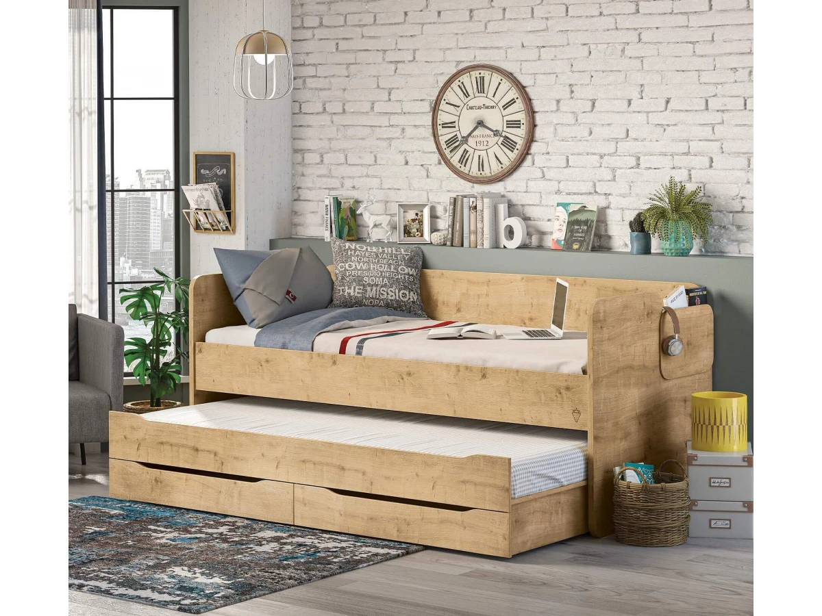 Ваш ребенок вырос и наступила пора обновить мебель в детской? Кровать Mocha Studio CLK_409086 – отличное решение, которое придется по вкусу не только вам, но и будущему маленькому хозяину или хозяйке. Изделие выпущено популярным брендом Cilek (Турция) и относится к серии Mocha. Матовый корпус оттенка орех смотрится изысканно и изящно, гармонично дополняя фасад, изготовленный из надежного и оптимального для детской материала. Перед покупкой новой кровати советуем тщательно замерить свободную площадь в помещении, чтобы кровать оптимально подошла по габаритам (920 мм в высоту, 950 мм в ширину и 2070 мм в длину), а также подобрать матрас 2000x900 мм. Кровать Mocha Studio вы можете приобрести за 39890 руб.