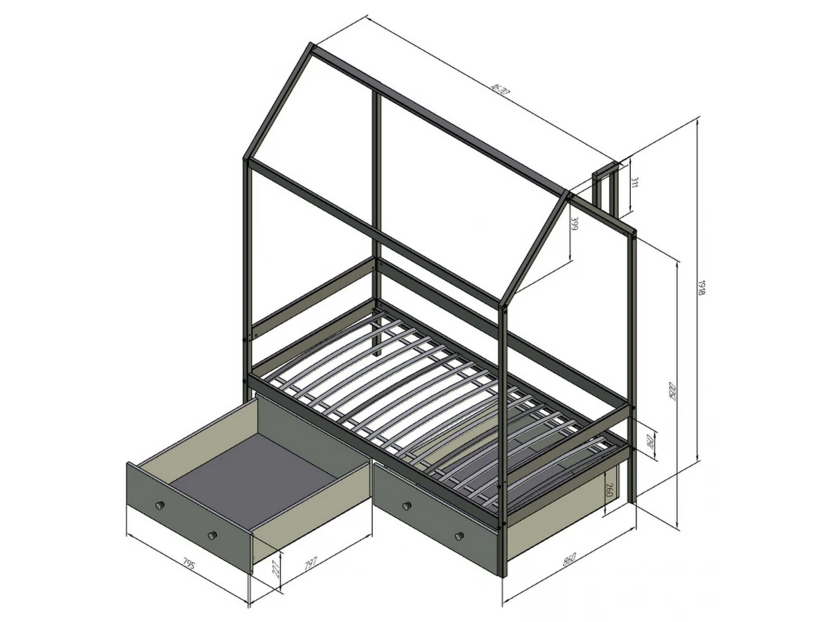высота крыши - 399 мм,