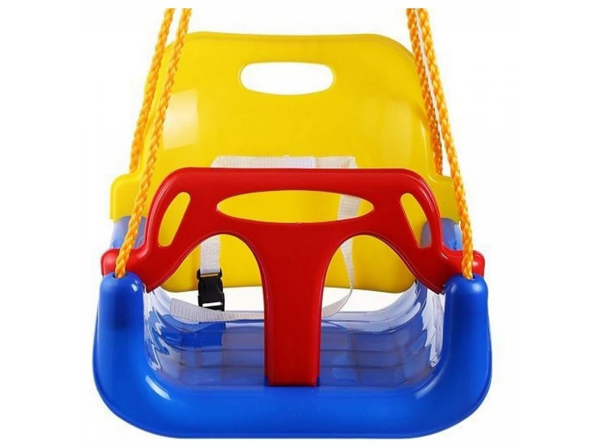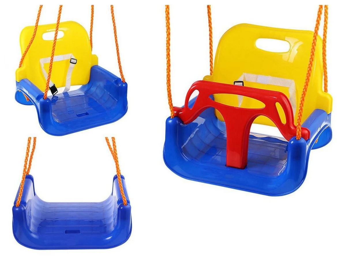 для малышей: со спинкой, надежной и безопасной Т-образной перекладиной;для детей постарше: со спинкой и веревочным поясом безопасности;для детей старше 36 мес - просто как обычные качели.