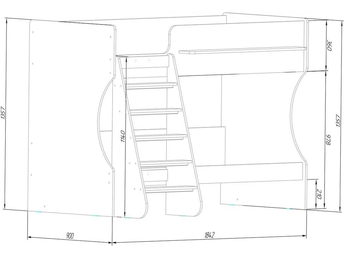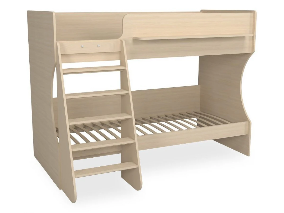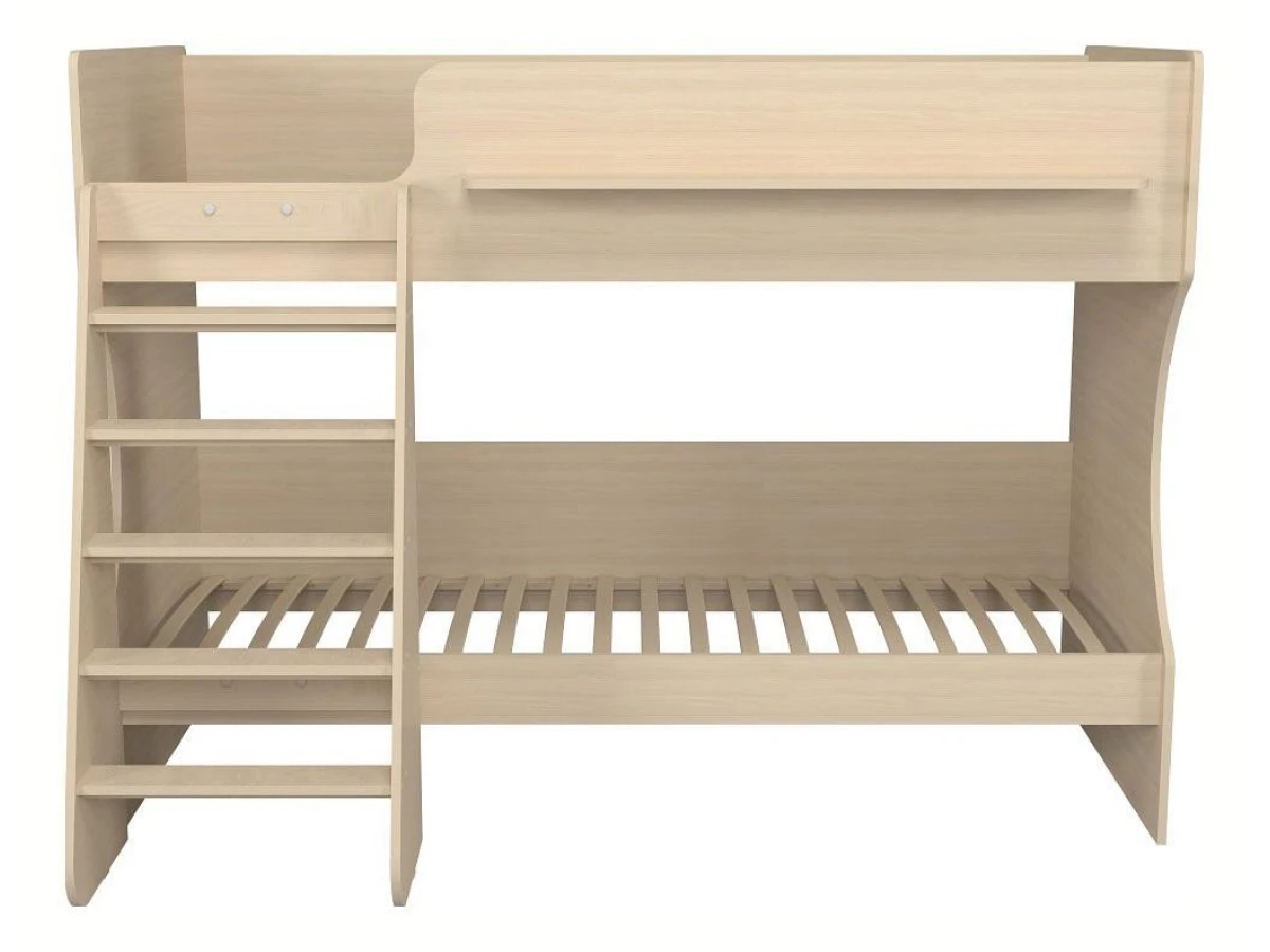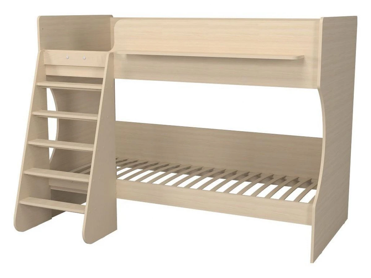 Ваш ребенок подрос и пришла пора обновить мебель в детской? Кровать двухъярусная Р438 KPZ_405486 – отличное решение, которое придется по душе не только вам, но и будущему маленькому хозяину или хозяйке. Изделие выпущено популярным брендом Капризун (Россия) и входит в серию «Р438». Эффектный матовый корпус оттенка дуб молочный смотрится изысканно и изящно, гармонично дополняя фасад, изготовленный из практичного и оптимального для детской материала (прочного и экологичного). Перед приобретением новой кровати не забудьте тщательно замерить свободную площадь в помещении, чтобы кровать оптимально подошла по габаритам (1357 мм в высоту, 1257 мм в ширину и 1842 мм в длину), а также подобрать 2 матраса 1800x800 мм. В комплект входит лестница,