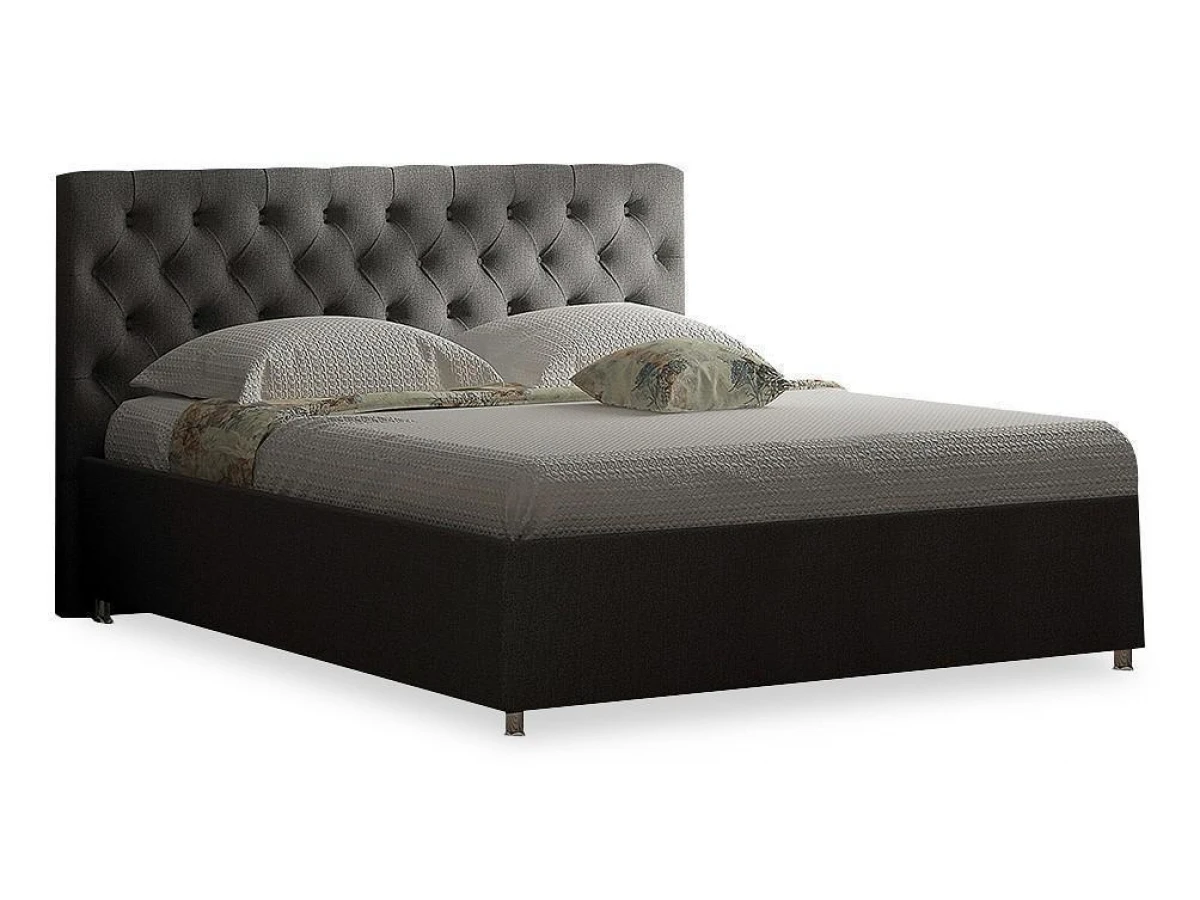 Элегантная интерьерная кровать с изголовьем, украшенным декоративными пуговицами и глубокой пиковкой. В комплект кровати входит кроватное основание. Каркас основания выполнен из металла, ламели - из берёзы.