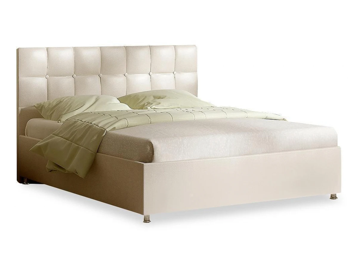 Элегантная интерьерная кровать с изголовьем, украшенным декоративными пуговицами. В комплект кровати входит кроватное основание. Каркас основания выполнен из металла, ламели - из берёзы.
