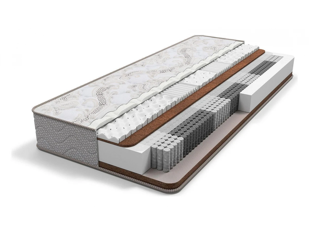 Матрас с разной жесткостью сторон на основе натуральных наполнителей. С одной стороны кокосовая койра в комбинации с натуральным латексом обеспечивают среднюю жесткость, а кокосовая койра с другой стороны обеспечивает максимальный ортопедический эффект благодаря повышенной жесткости.