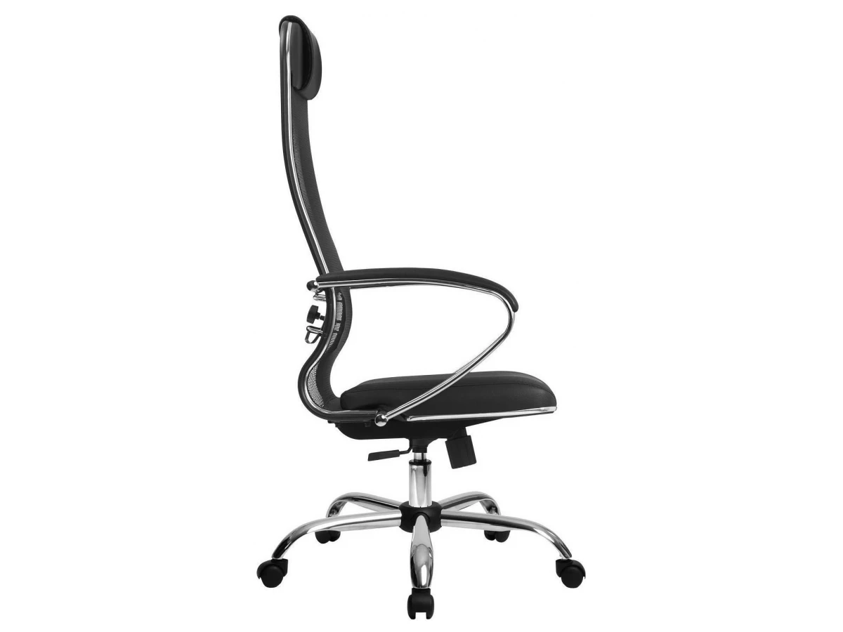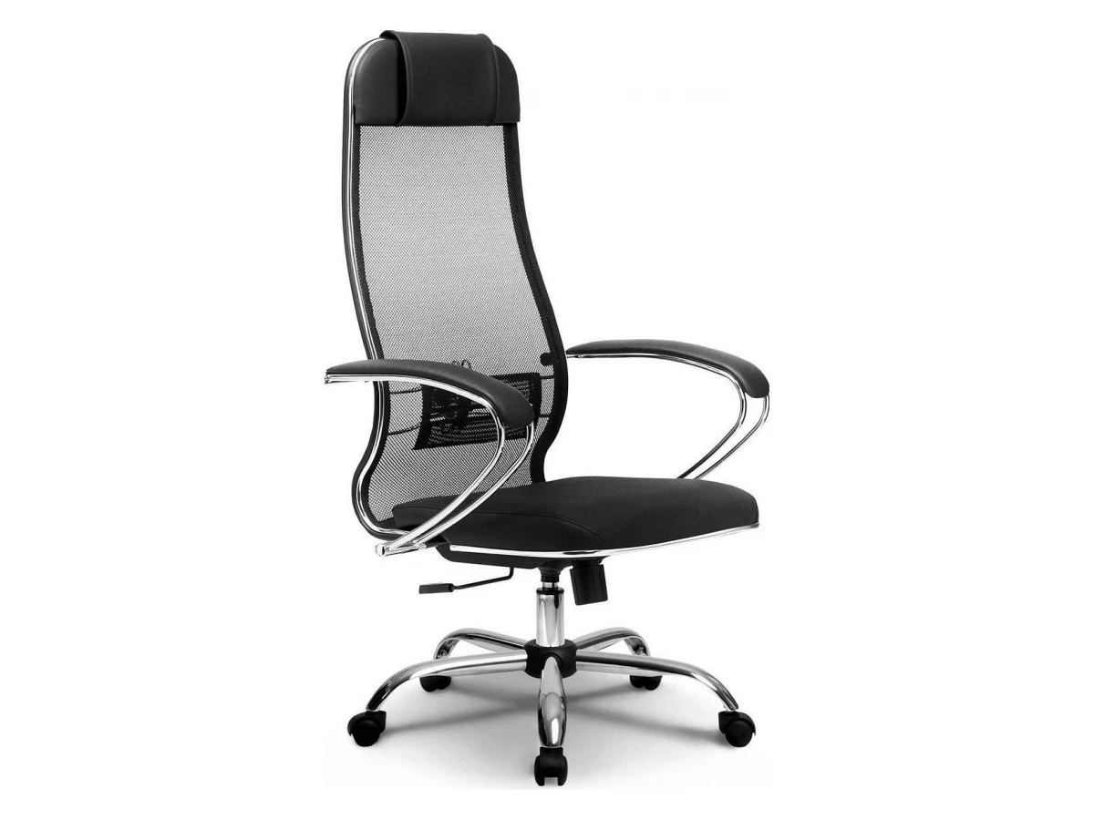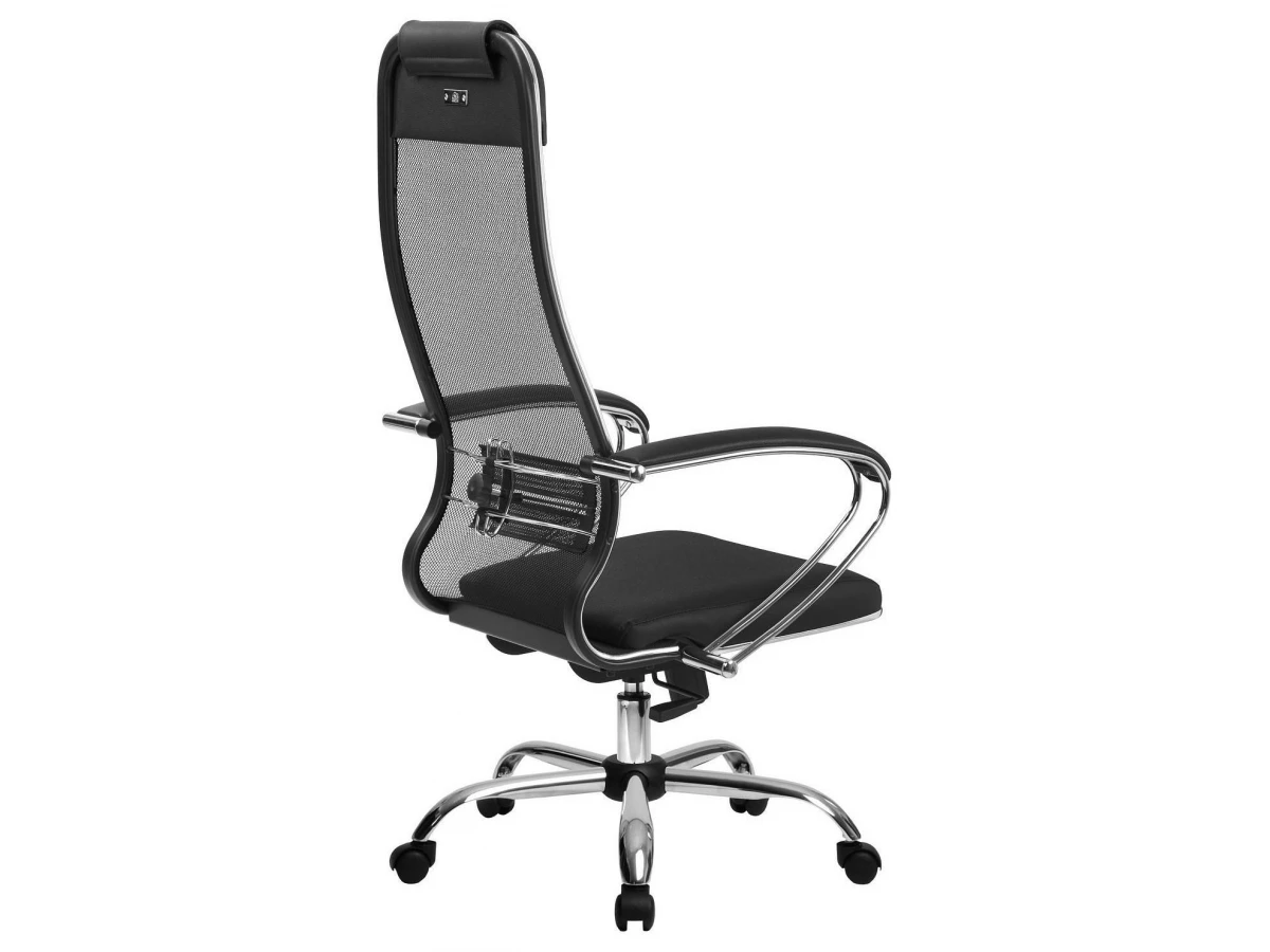 Подлокотники - стальные классические, покрытые зеркальным хромом. Обивка накладок - экокожа.
