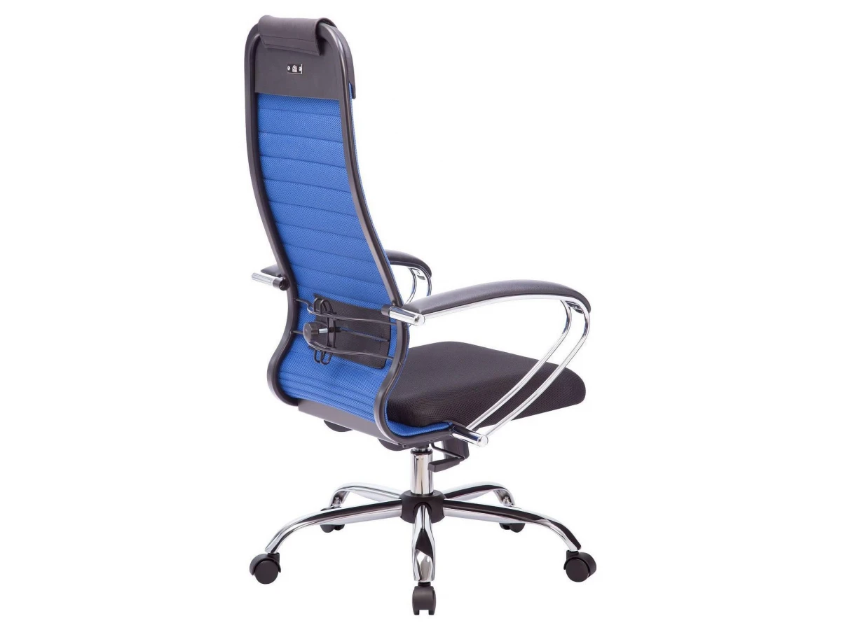 Подлокотники - стальные классические, покрытые зеркальным хромом. Обивка накладок - экокожа.