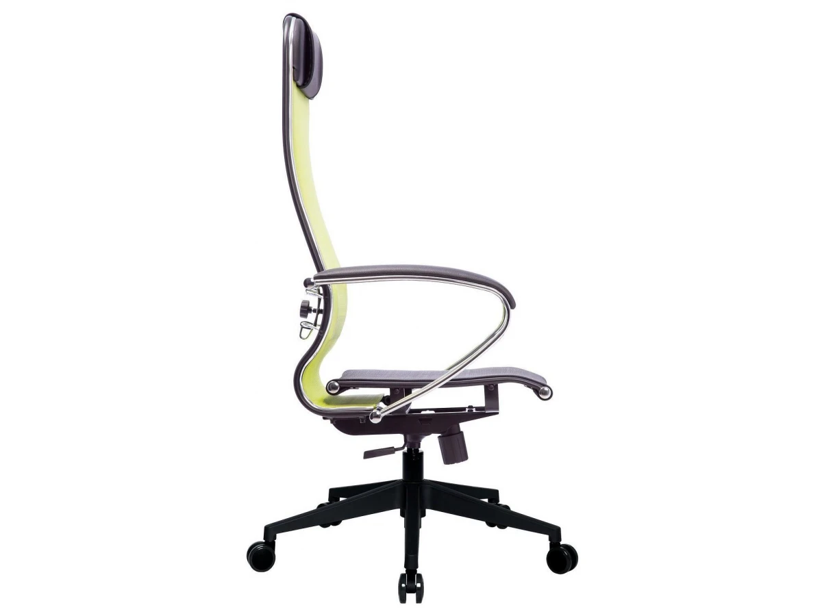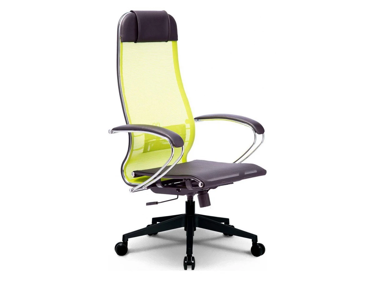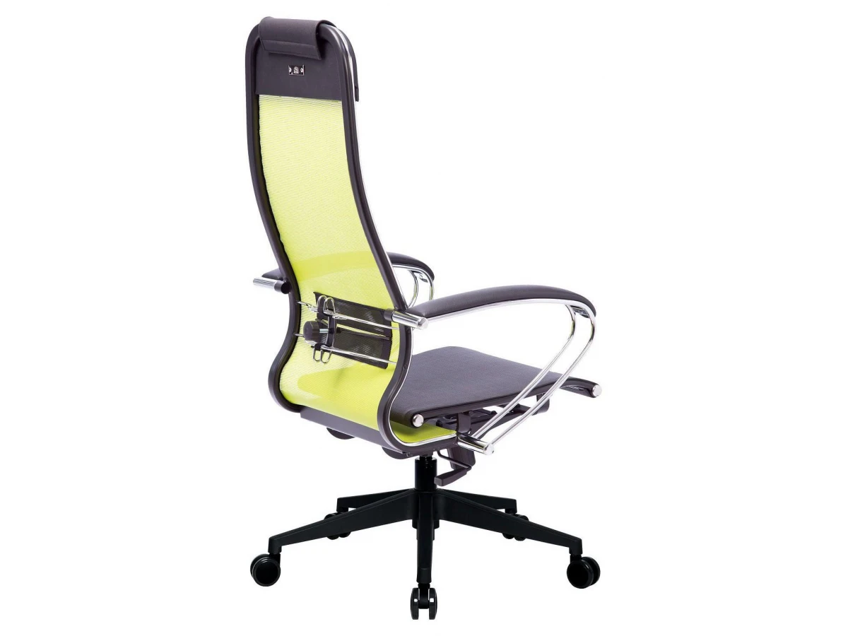 Подлокотники - стальные классические, покрытые зеркальным хромом. Обивка накладок - экокожа.