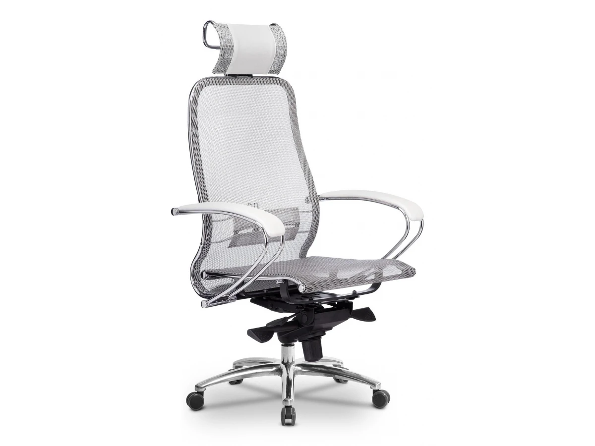 Кресло S-2.04, белый лебедь, кожа искусственная NewLeather, ткань сетчатая, армированная арамидным волокном