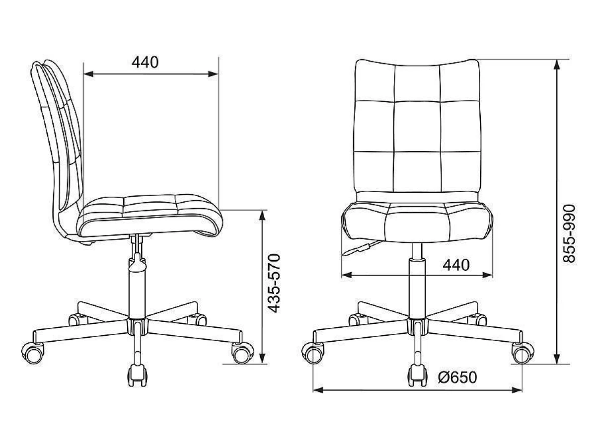 Ширина сиденья - 475 мм. Глубина сиденья - 400 мм. Высота сиденья - 470-570 мм.