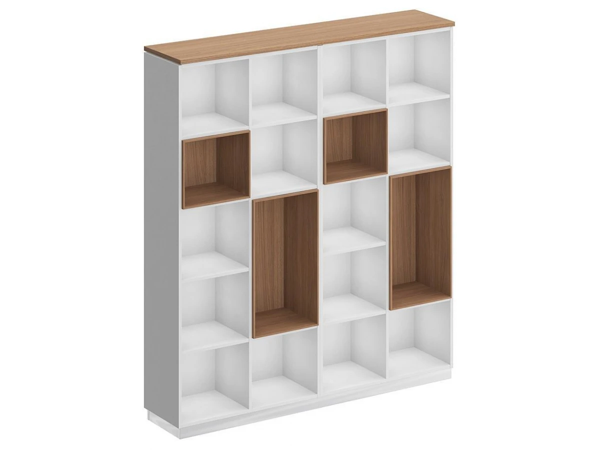 Стеллаж является стенкой из двух стеллажей под общим топом. Декоративный зазор между топом и боковыми стенками стеллажей.