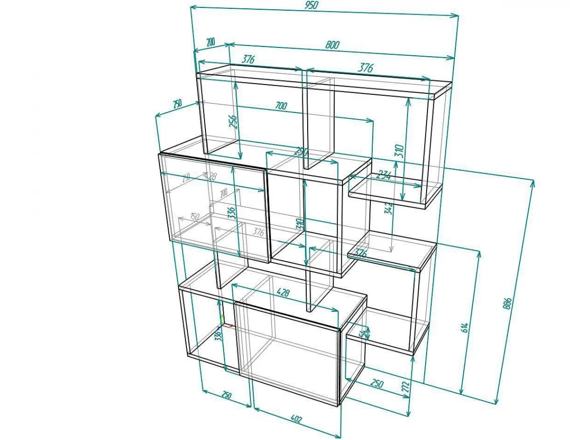3 дверцы, 5 полок