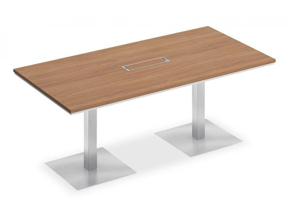 Стол состоит из столешницы, заглушки кабель-канала и двух металлических опор-колонн на квадратном утяжеленном основании.