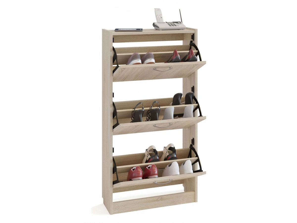 Порядок в доме – это залог красивого и аккуратного интерьера. Тем приятнее, когда зоной для хранения становится вместительная и практичная Тумба для обуви ТО-23 . Данная модель создана брендом Сокол и относится к коллекции «ТО-23». Матовый корпус тумбы выполнен из популярного материала ( ЛДСП Е1) и окрашен в благородный оттенок «дуб сонома». Производитель предлагает следующую комплектацию тумбы: 3 дверцы, 3 полки.