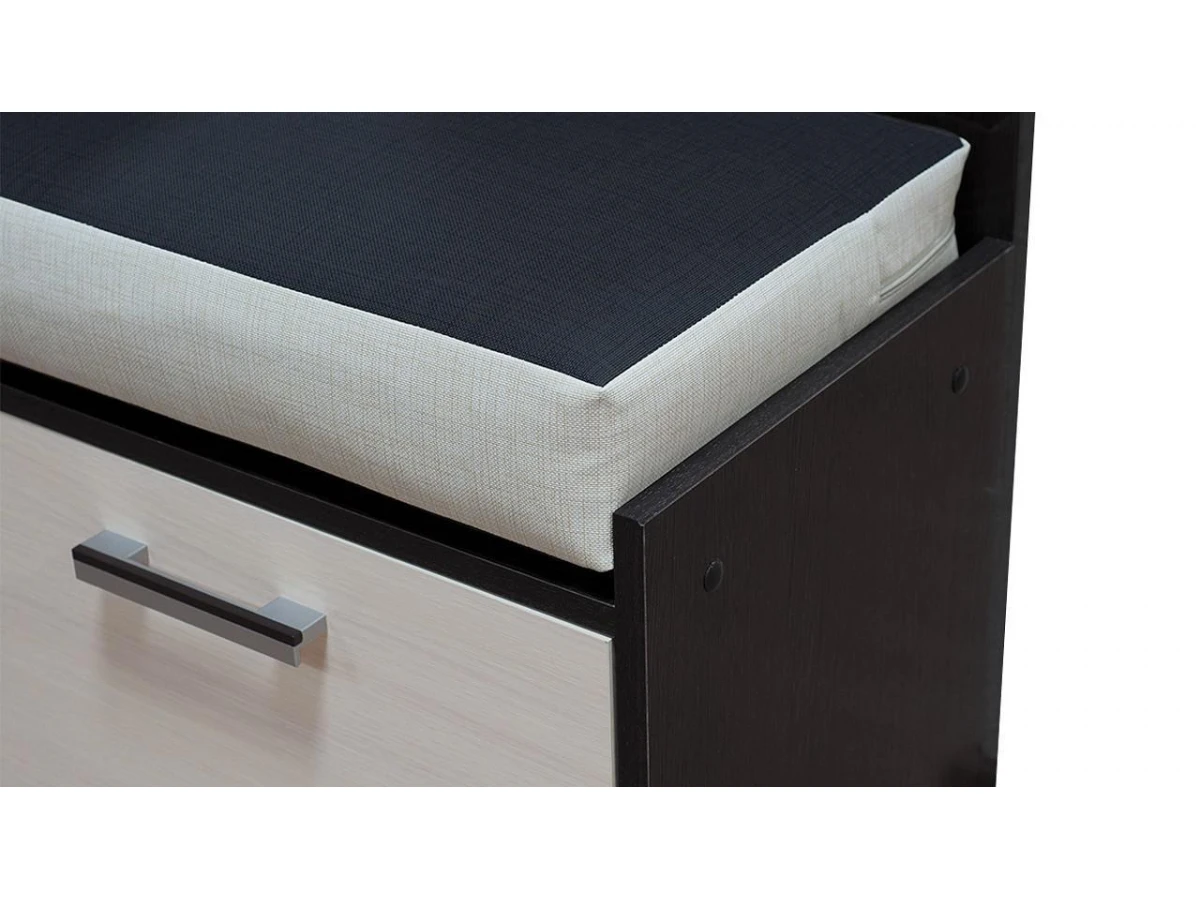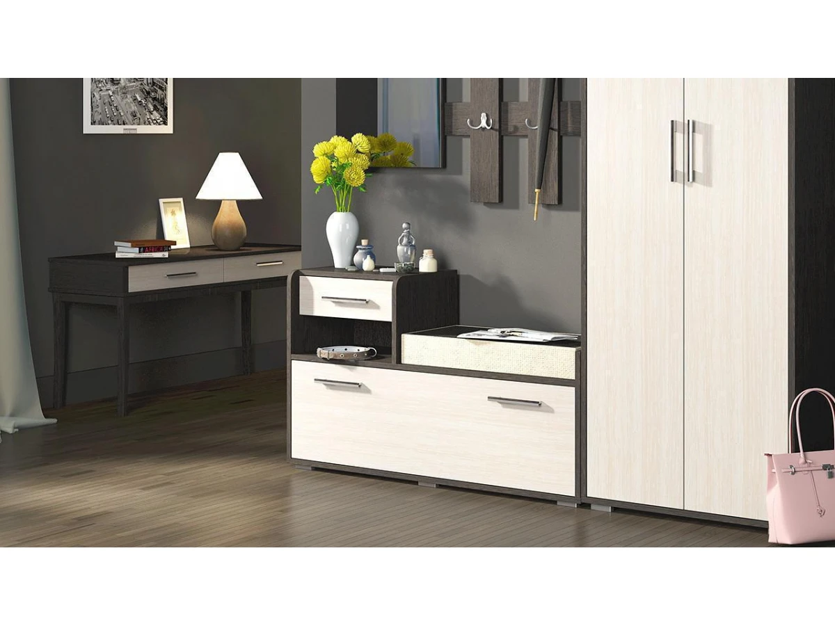 Компактная тумба из коллекции модульной мебели «Арт» - это стильный и функциональный мини-комплекс для хранения обуви, аксессуаров, ключей и разного рода мелочей. Модель, оснащённая большим отделением, выдвижным ящиком и нишей, отлично впишется в интерьер любого стиля и будет уместна даже в небольшой прихожей. Удобная подушка-пуф позволит присесть на неё во время переобувания.