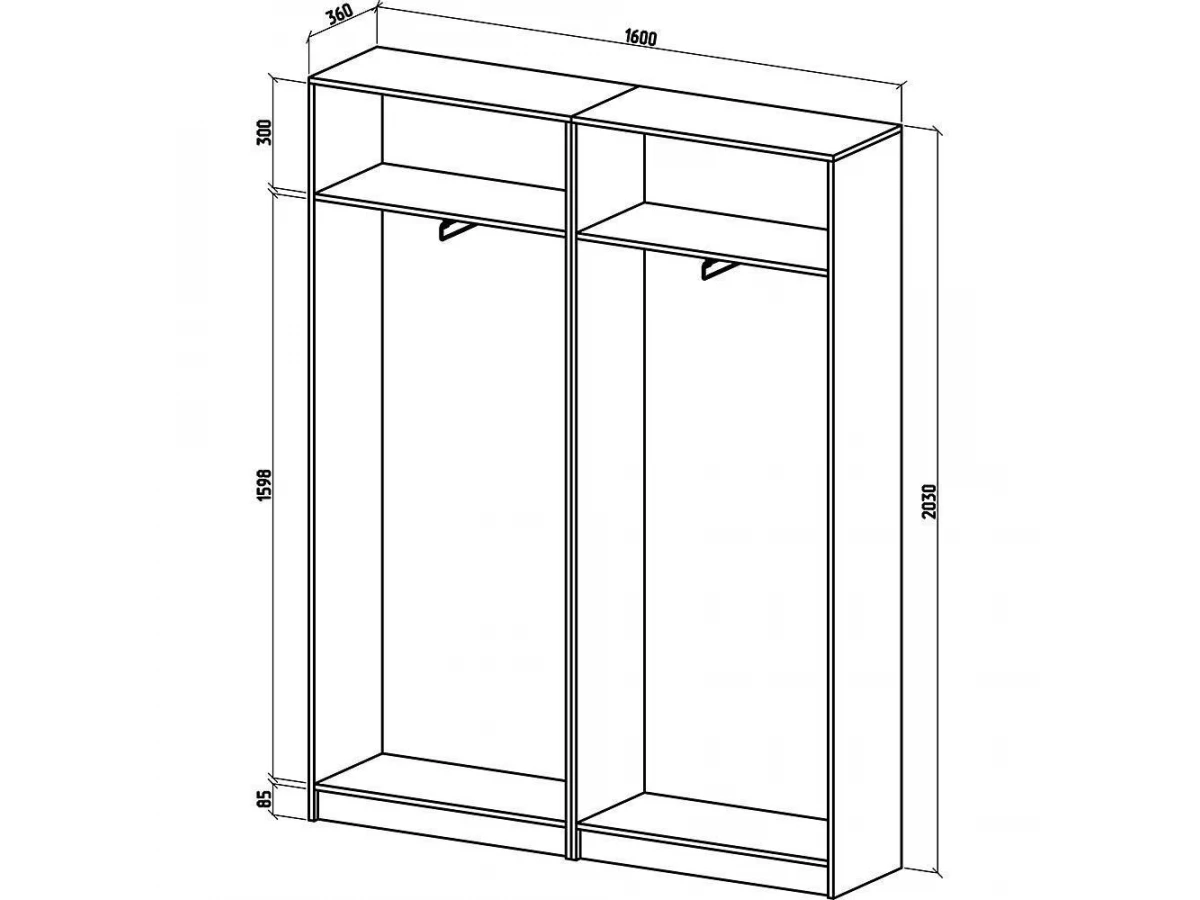 2 полки,2 штанги для вешалок,4 дверцы