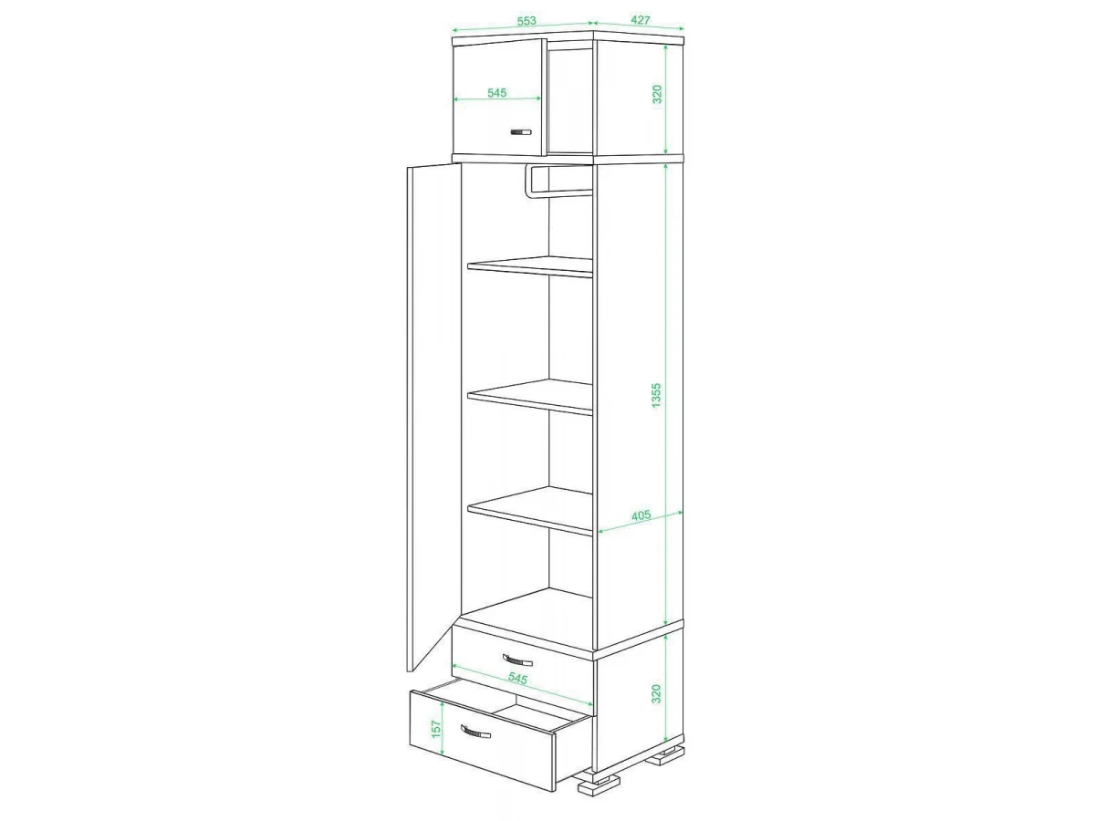 1 штанга для вешалок,2 дверцы, 2 ящика