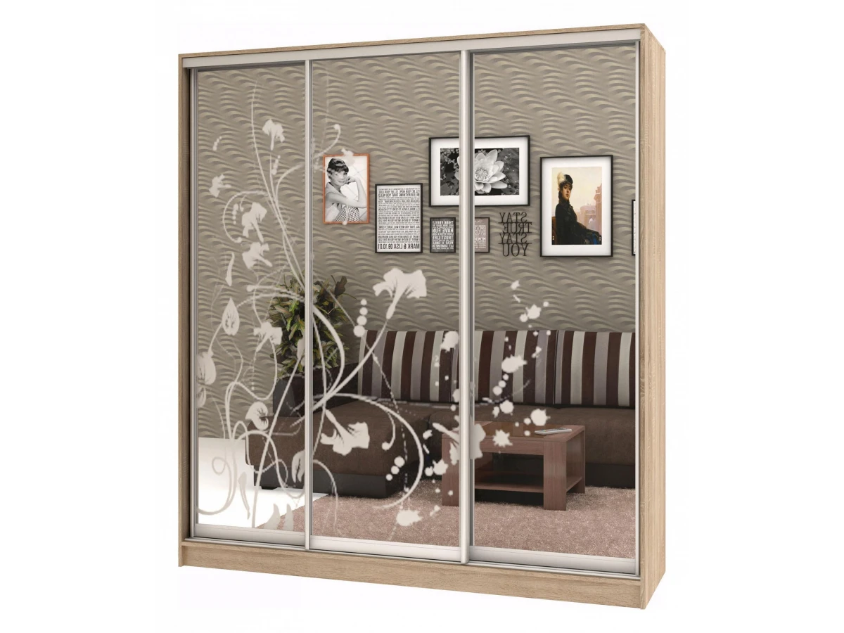На зеркало нанесен пескоструйный рисунок.