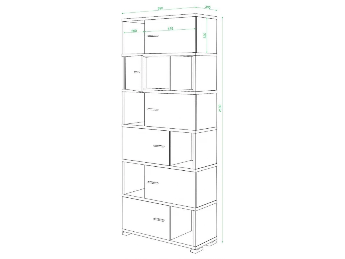 6 дверц, 5 полок