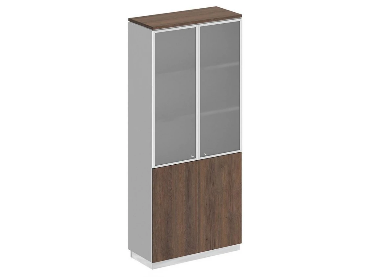 Две двери со стеклом в металлической рамке без замка с системой открывания Push To Open (без ручек).