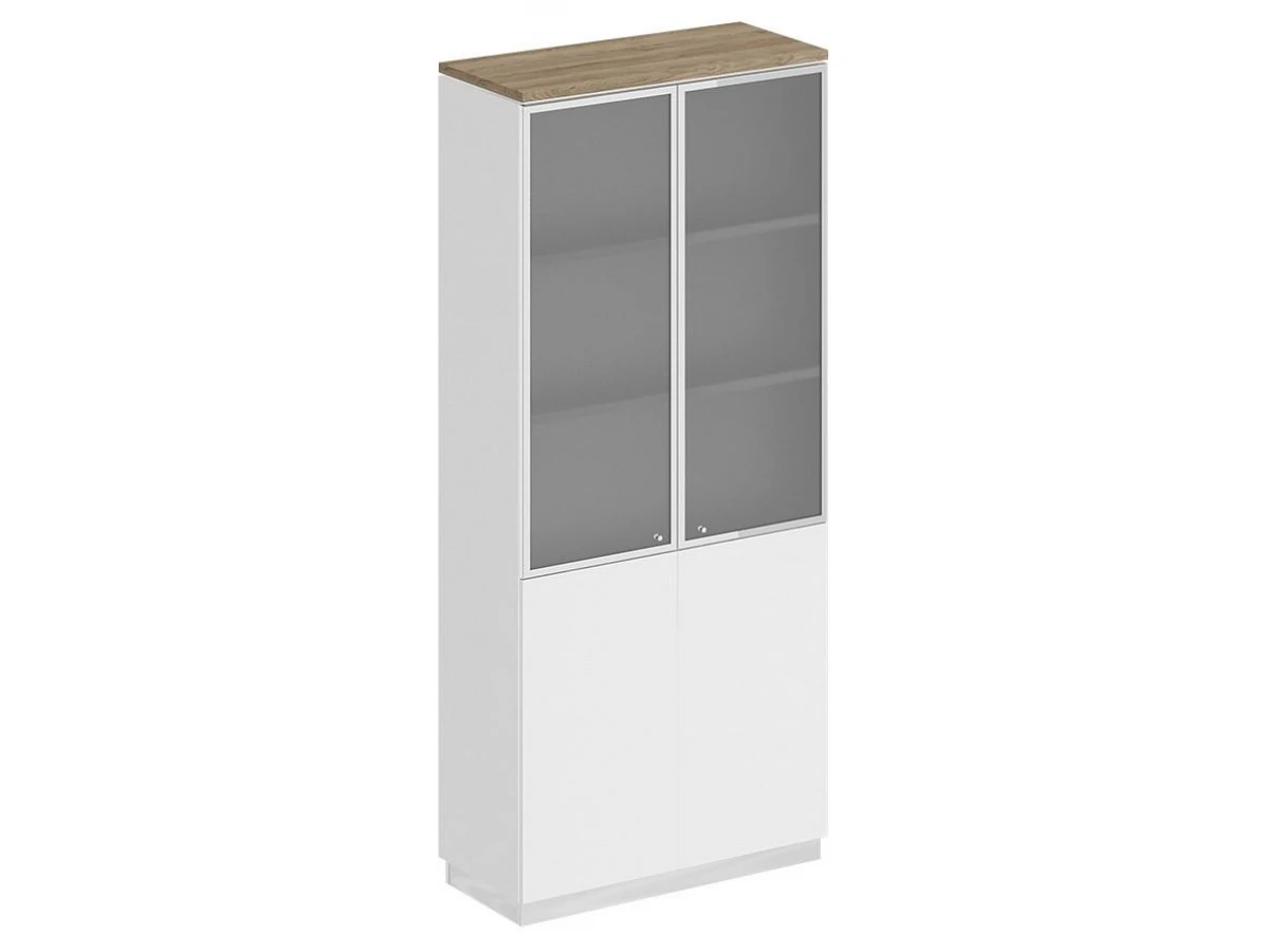 Две двери со стеклом в металлической рамке без замка с системой открывания Push To Open (без ручек).