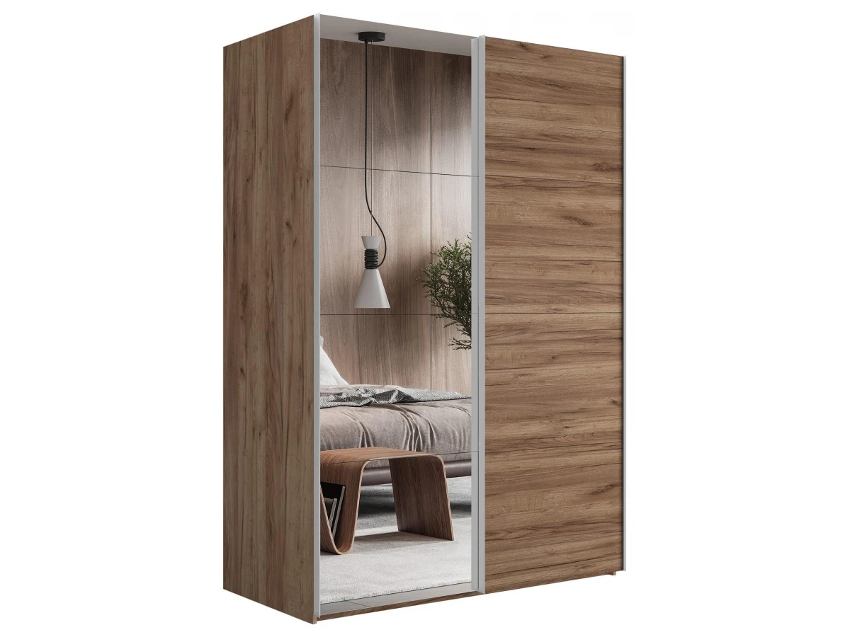 Прочная конструкция шкафа за счет усиленного ходового профиля. Профиль не выгибается при тяжелых дверях.