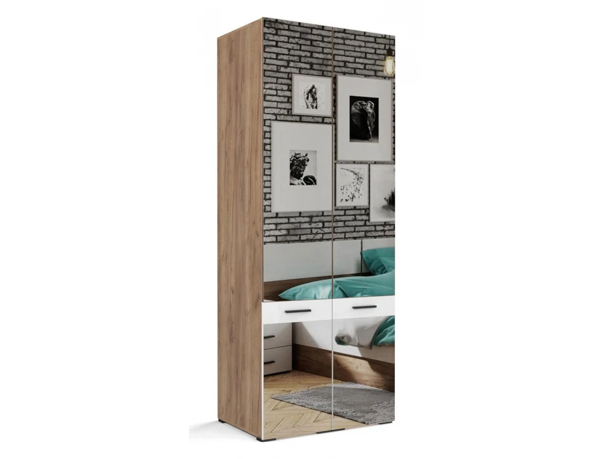 Шкаф 2-х дверный Берн белый, зеркальный
