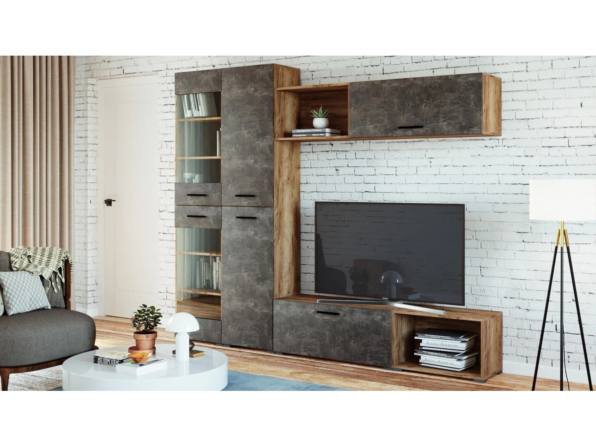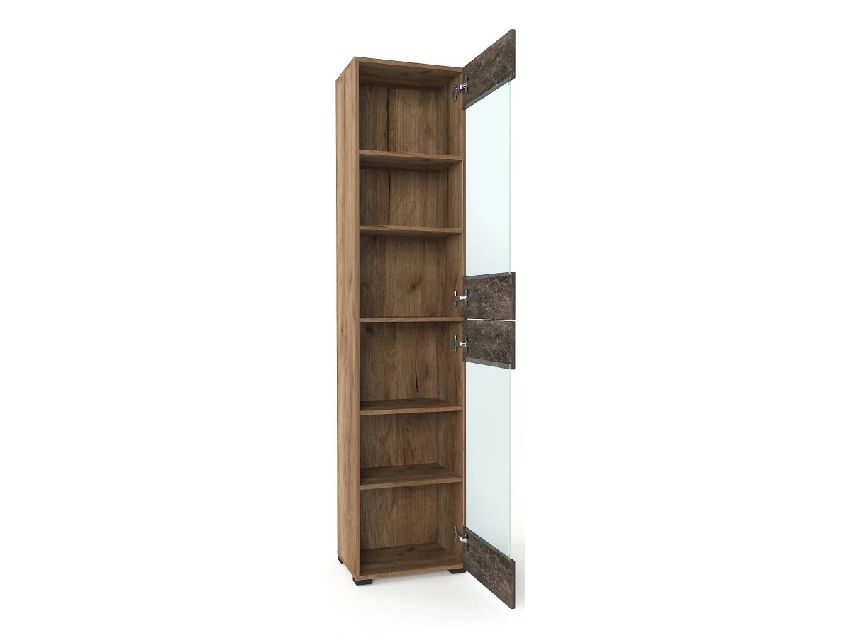 Корпус без сквозных отверстий - мебельные стяжки внутри мебели.Металлические мебельные ручки черного цвета в комплекте.Кромки ПВХ обеспечивают долговечность мебели.Кромки ПВХ обеспечивают долговечность мебели.Комбинированные распашные фасады из ЛДСП цвета бетон и прозрачного стекла.Шкаф надежно крепится к стене.Четыре регулируемые опоры черного цвета в комплекте.