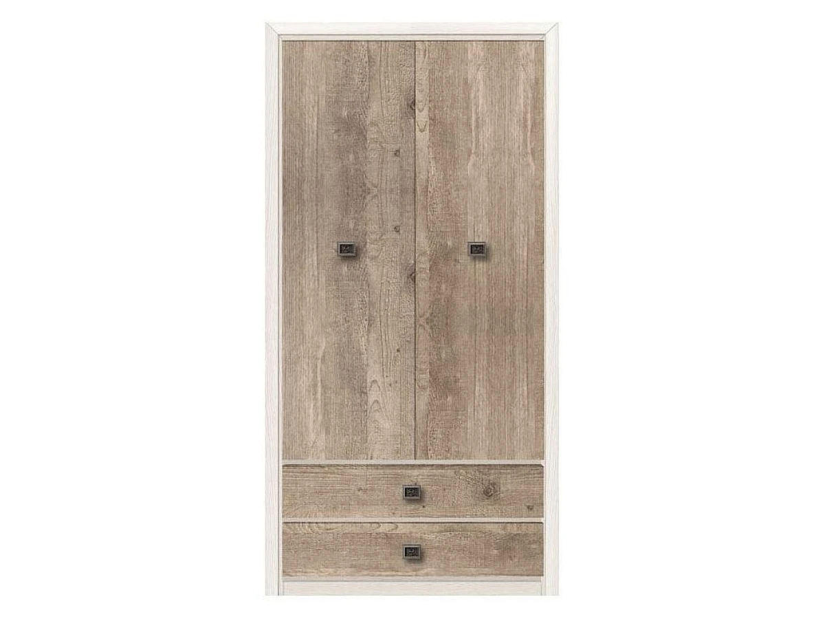Практичный шкаф Коен имеет отделение для одежды за распашными дверями и отделение с двумя выдвижными ящиками.
