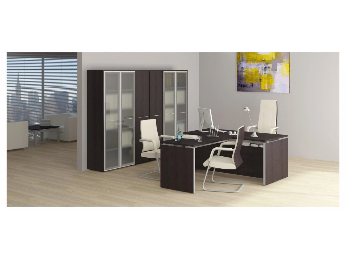 Гарнитур для руководителя Reventon UTX_Reventon_system_2 представлен известным брендом Юнитекс и относится к серии «Reventon». Это прекрасный вариант мебели для представителя компании, модель вместительна и при этом не занимает много места, позволяя разместить ее даже в малогабаритном помещении. Матовый корпус прочен, выполнен из популярного материала (ДСП, ЛДСП Е1) и, благодаря выигрышному оттенку (венге темный), гарнитур для руководителя Reventon оптимально впишется практически в любой офисный стиль. Приобрести данную комплектацию, включающую в себя стол для руководителя - 2000x900x760 мм стол приставной - 1200x700x761 мм тумба-витрина - 2740x460x1960 мм стол журнальный - 800x800x450 мм, можно за 304703 руб, при этом фирма предлагает гарантию 12 мес. Желаем вам приятных покупок!