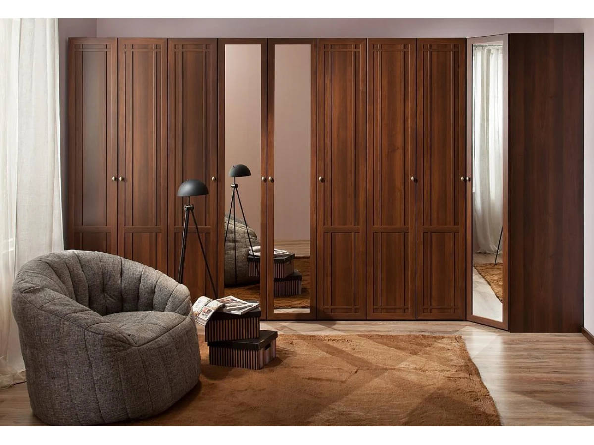 Шкаф для белья Шерлок 611. При оформлении спальни в классическом или английском стиле, никак не обойтись без шкафов с распашными дверями. Шкаф для белья оснащен четырьмя полочками, расстояние между которыми регулируется вами при сборке.