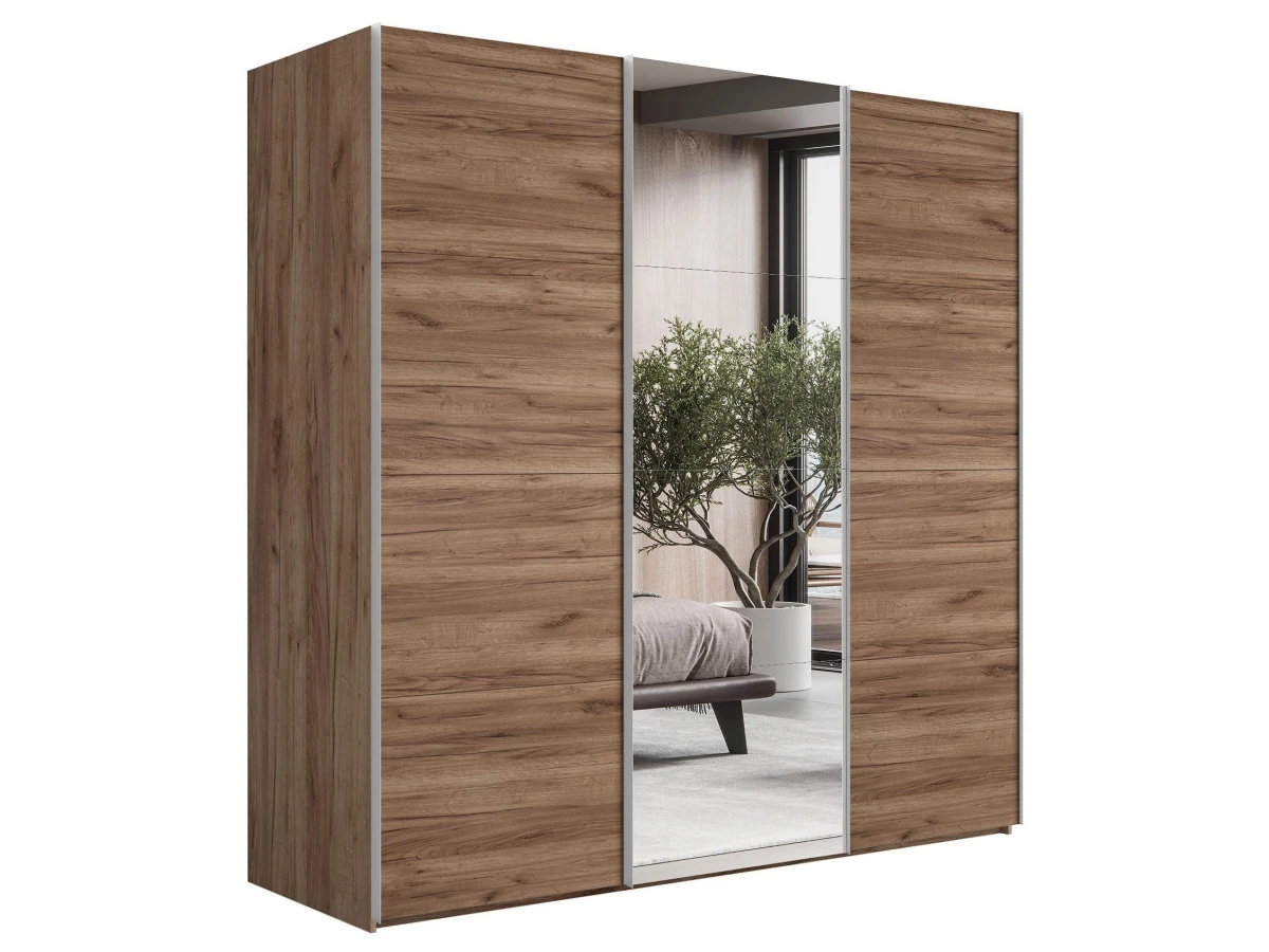 Прочная конструкция шкафа за счет усиленного ходового профиля. Профиль не выгибается при тяжелых дверях.