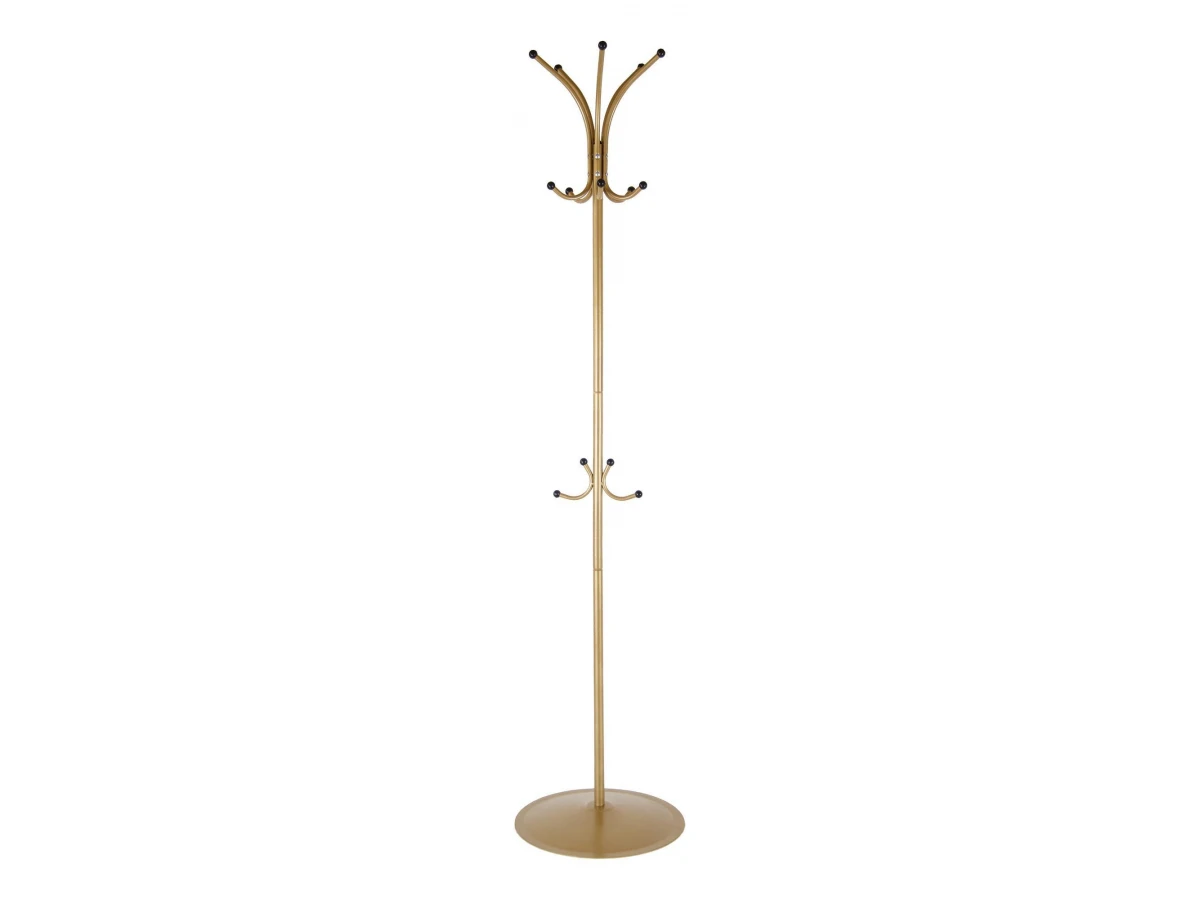 Порядок в доме – это залог красивого и аккуратного интерьера. Тем приятнее, когда зоной для хранения становится функциональная и практичная вешалка-стойка Пико 4 ML_P0002616. Эта модель создана брендом Мебелик и относится к коллекции «Пико». Полуматовый корпус изделия выполнен из износостойкого материала (сталь) и окрашен в благородный оттенок «золото». Производитель предлагает комплектацию, в которую входит: указанное на фото изделие. Вешалка-стойка Пико 4 стоит 2665 руб.