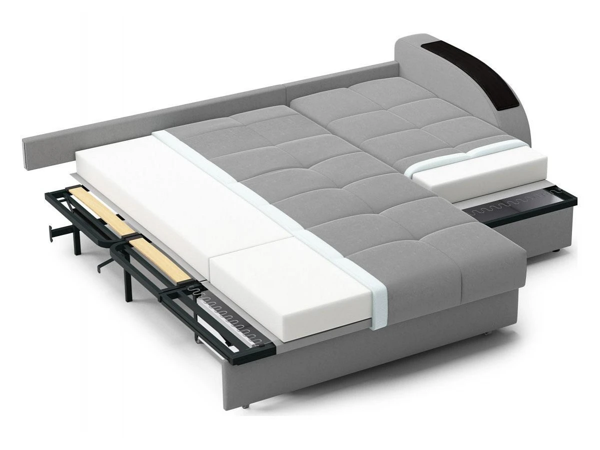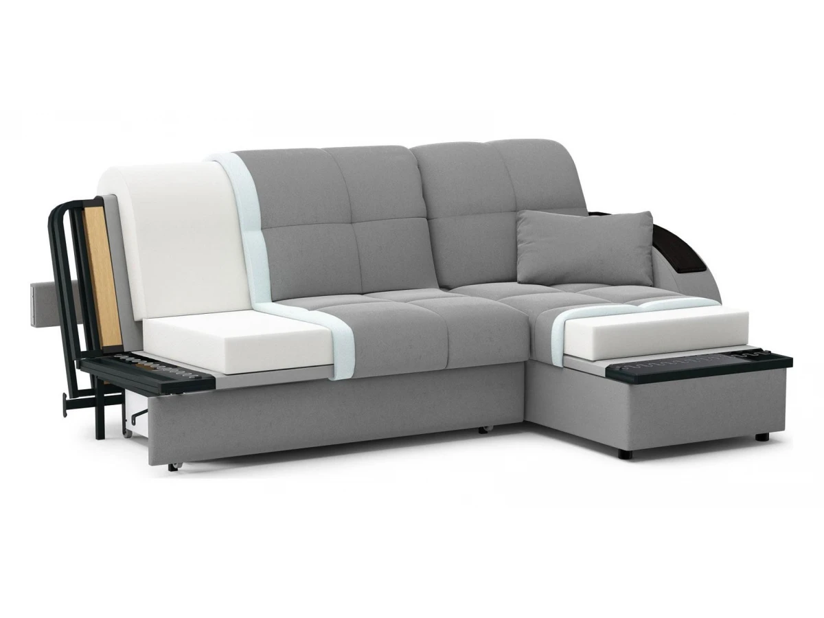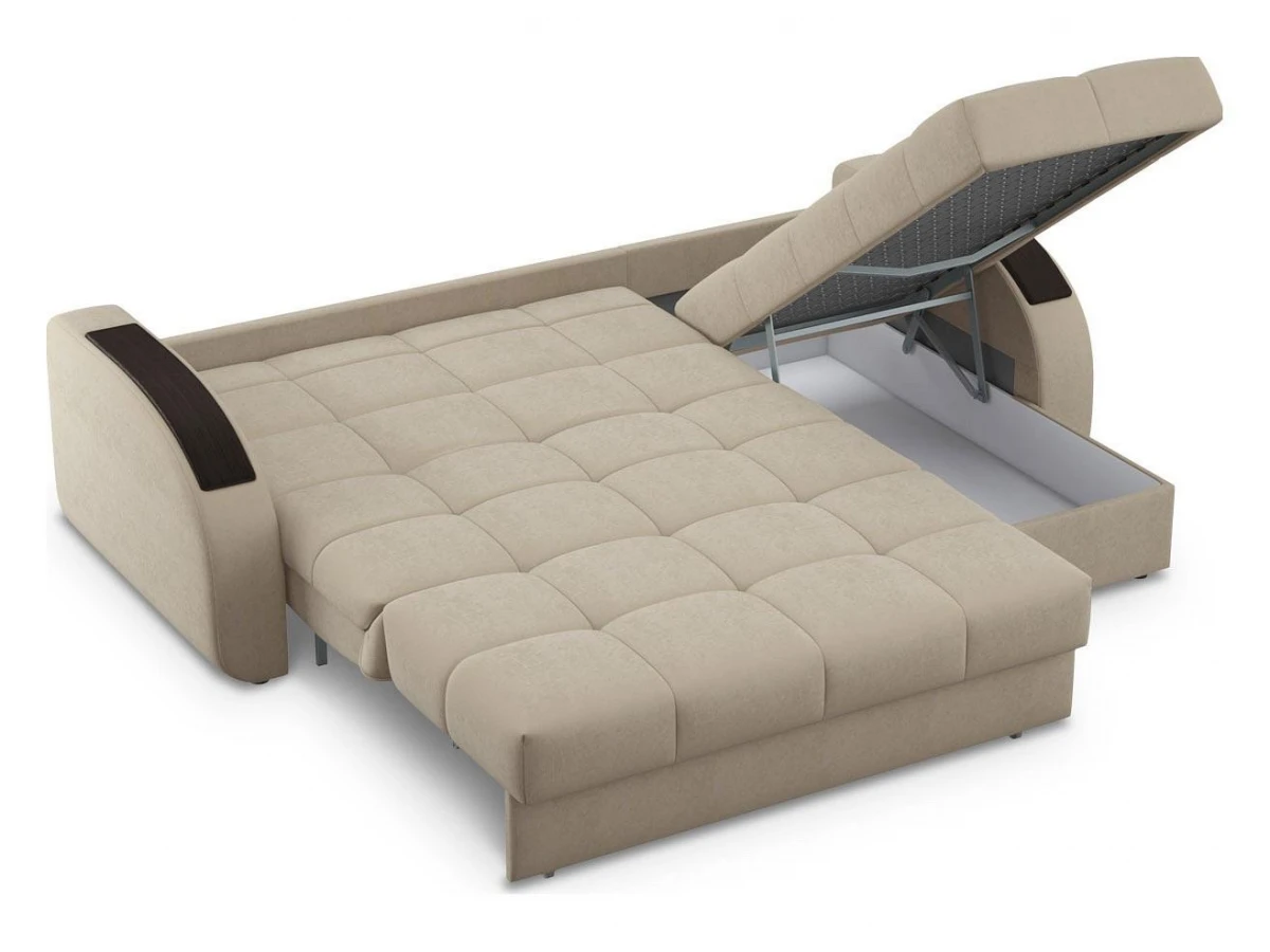 комфортный уровень посадкисовременный модный дизайннадежный механизм трансформации подходит для ежедневного использованиядиван обладает полноценным спальным местоморигинальный декор подлокотников выполняет функцию практичных столешницчехол модели съемный для чистки.
