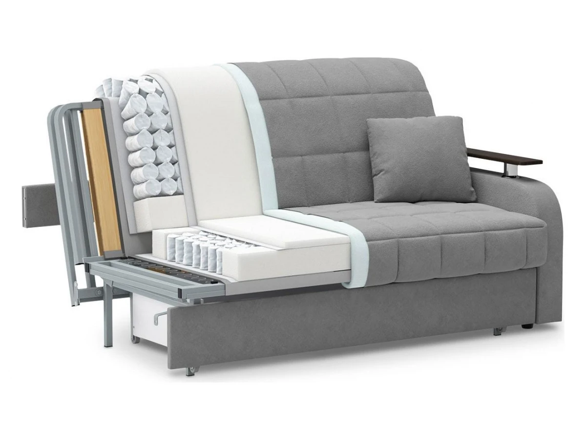 комфортный уровень посадкинадежный механизм трансформации подходит для ежедневного использованияпри минимальных габаритах диван обладает отличным спальным местоморигинальный декор подлокотников выполняет функцию практичных столешницчехол модели съемный для чистки.