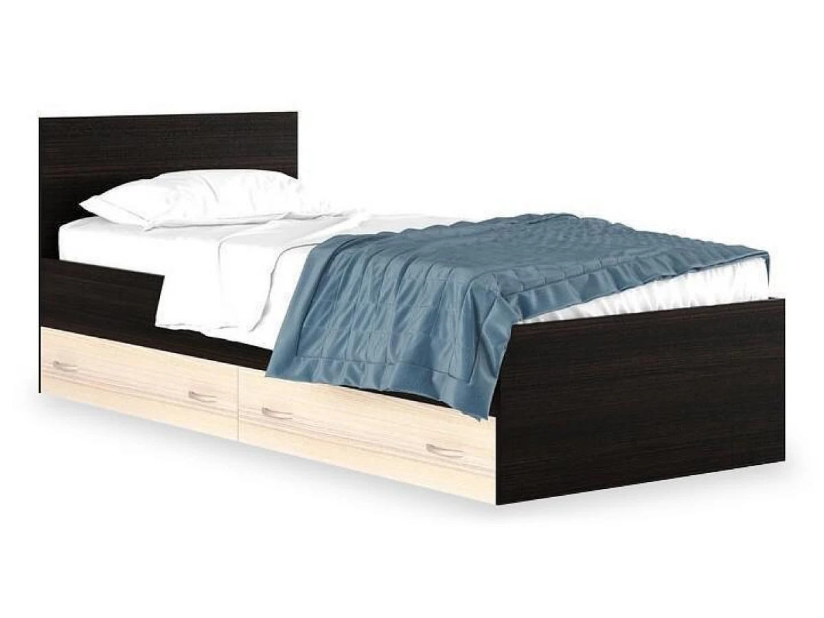 Кровать односпальная Виктория с матрасом 2000х900 – отличный выбор для интерьера вашей спальни. Данная модель создана брендом Наша мебель (Россия) и входит в серию Виктория. Ее фактические размеры соответствуют 780 мм в высоту, 950 мм в ширину, а длина кровати составляет 2035 мм. Размеры спального места: 2000 мм в длину и 900 мм в ширину. Практичный и качественный корпус (ЛДСП Е1 , венге матовый ) отлично сочетается с изящным фасадом модели (ЛДСП Е1 , дуб молочный ). В комплект также входит матрас 2000х900, основание - настил ДСП, 2 ящика для белья. Приятных покупок!