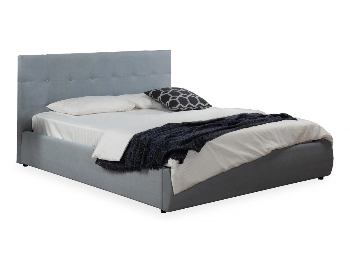 Кровать имеет усиленное металлическое основание с амортизирующими ортопедическими ламелями.
