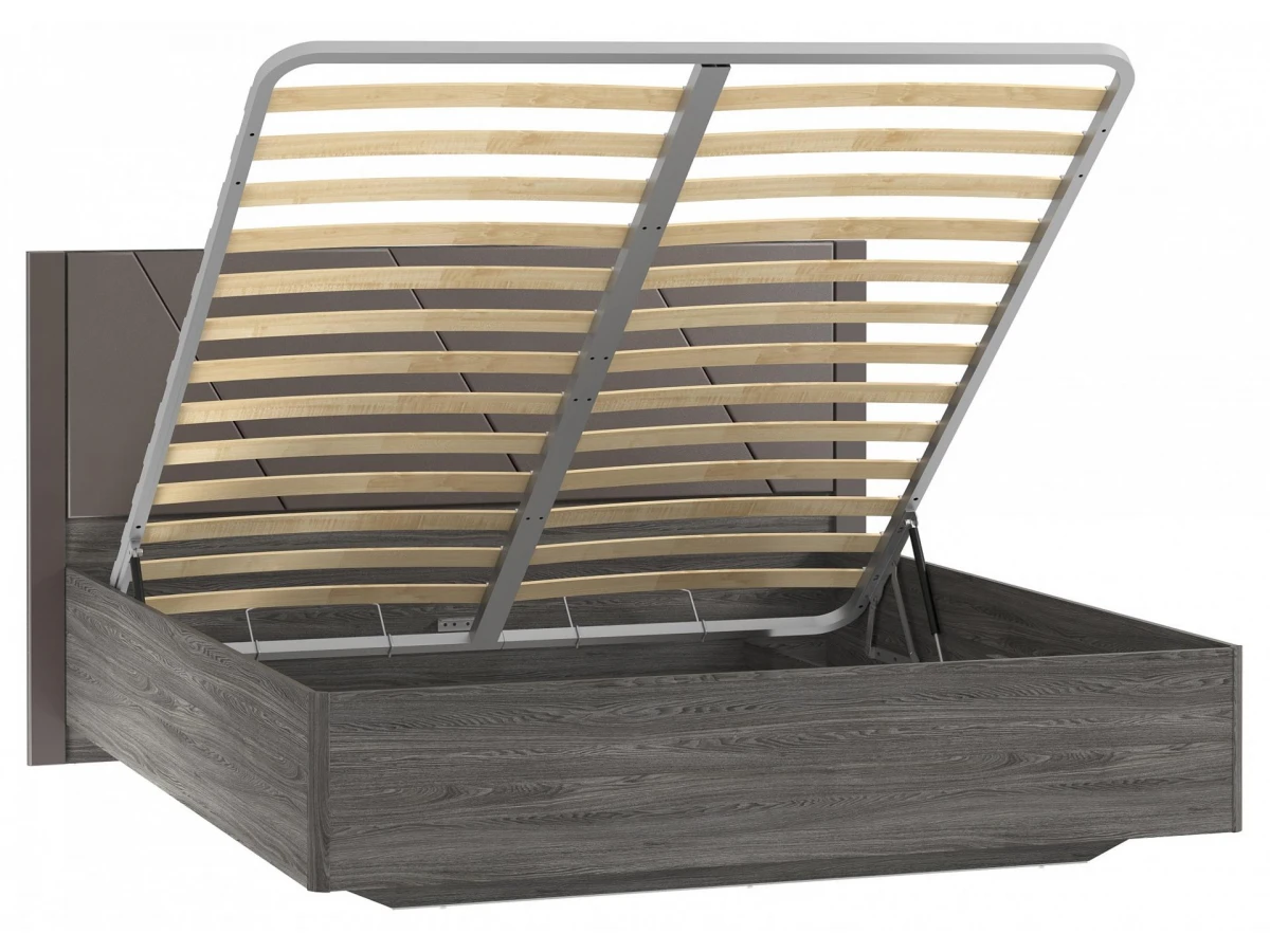 Кровать двуспальная с мягким изголовьем , подъемным механизмом и ортопедическим основанием. Спальное место 2000х1800 мм. Кровать оборудована бельевым ящиком.