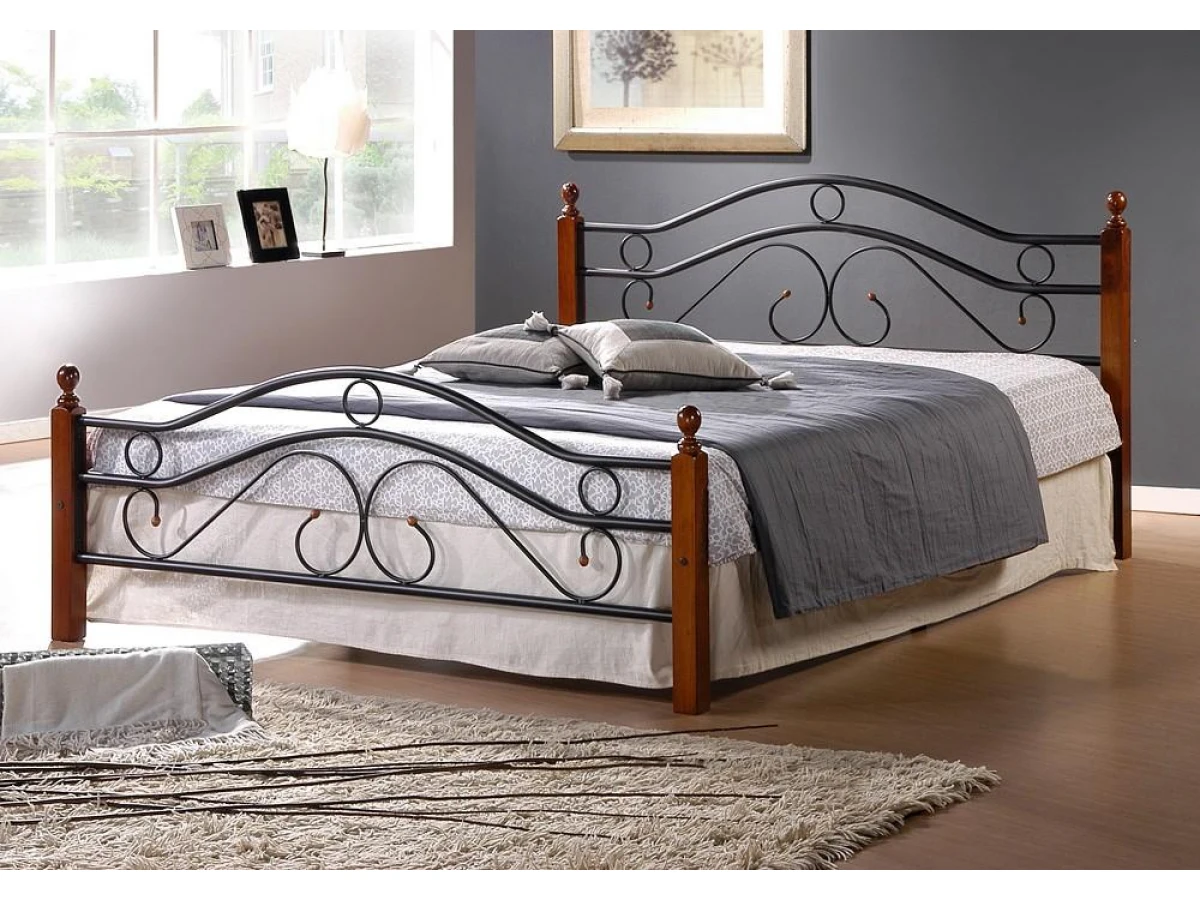 Кровать двуспальная AT-803 коричневый, черный
