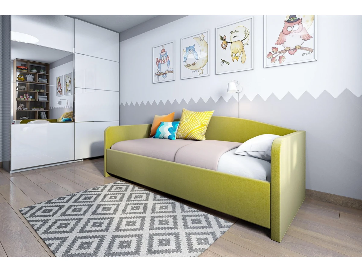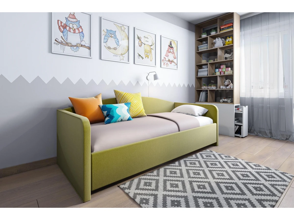 Односпальная интерьерная кровать. В комплект кровати входит кроватное основание. Каркас основания выполнен из металла, ламели - из берёзы. Кровать односпальная с матрасом и подъемным механизмом Uno 90-200 – хорошее решение для интерьера вашей спальни. Данная модель создана брендом Sonum (Россия) и входит в серию Uno. Ее фактические параметры соответствуют 850 мм в высоту, 1000 мм в ширину, а длина кровати составляет 2100 мм. Размеры спального места: 2000 мм в длину и 900 мм в ширину. Устойчивый корпус (ЛДСП Е1, МДФ ламинированный, металл велюр, матовый ЗЕЛЕНЫЙ) отлично сочетается с изящным фасадом модели ( велюр, матовый зеленый). В комплект также входит матрас - 2000х900 мм, ортопедическое основание, подъемный механизм, ящик для белья. Приятных покупок!