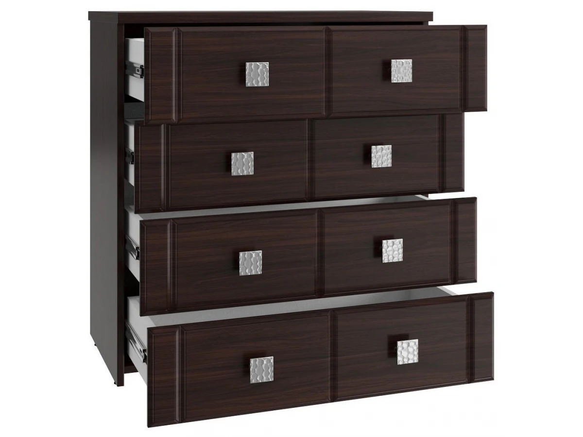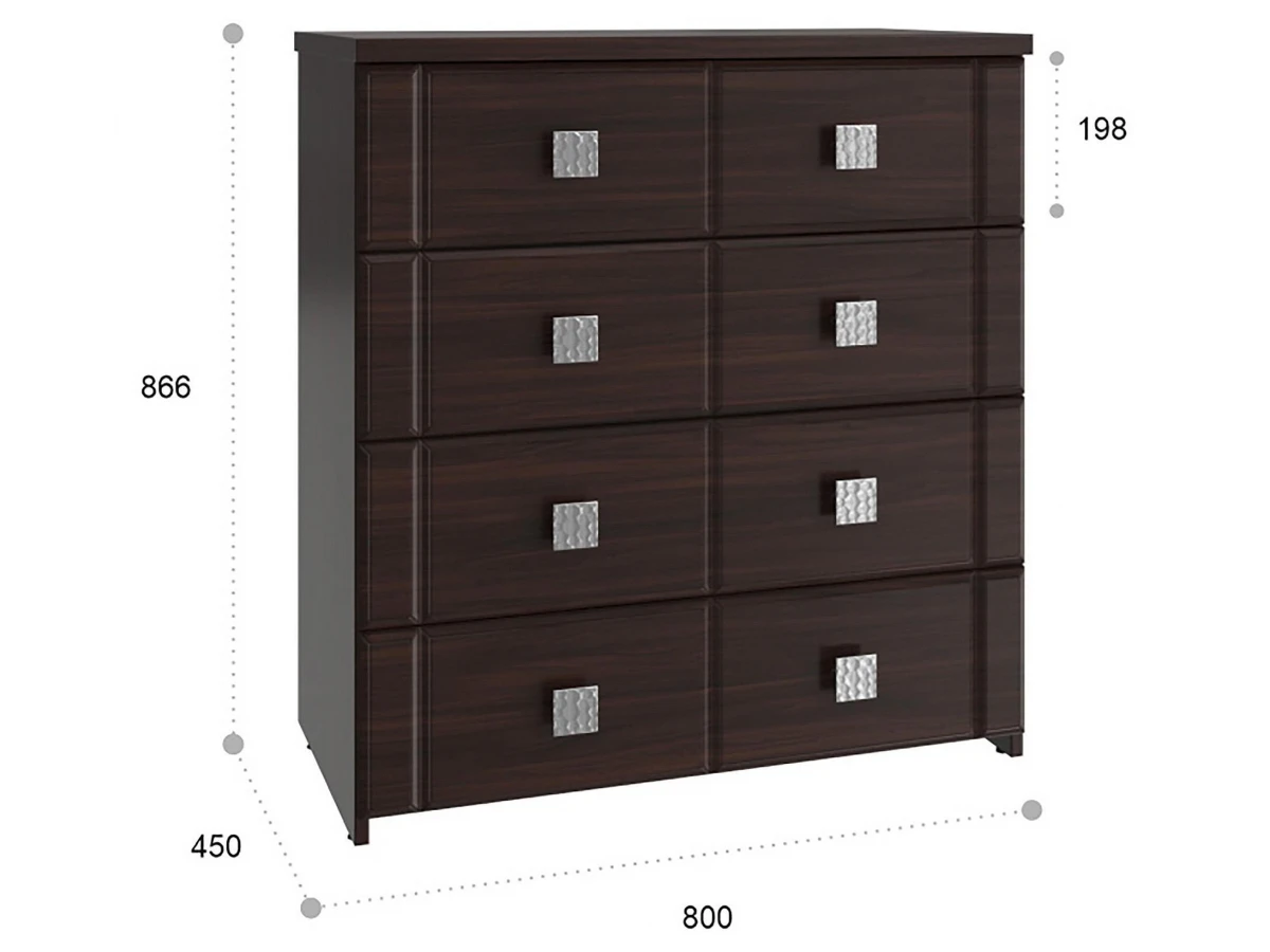 Мелочи создают общее настроение в интерьере, особенно, если лежат не на своих местах. Справиться с этой задачей поможет комод Изабель ИЗ-50К KOM_IZ-50K_2, созданный актуальным брендом Компасс-мебель. Данная модель входит в коллекцию «Изабель» и стоит 13968 руб. Производитель предлагает следующую комплектацию: 4 ящика. Матовый корпус выполнен в благородном оттенке «орех темный», тонко перекликающимся с расцветкой фасада (орех темный), изготовленного из качественного сырья (МДФ). Благодаря оптимальным габаритам комода (изделие длиной 866 мм, шириной 800 мм и выступом 450 мм), вы сможете разместить в нем все необходимое, при этом сохранив полезное пространство в помещении.