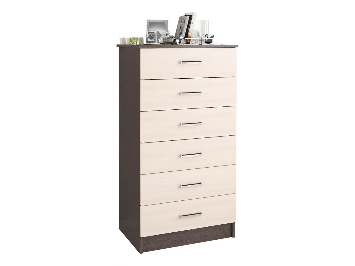 Мелочи создают общее настроение в интерьере, особенно, если лежат не на своих местах. Справиться с этой задачей поможет комод Катрин-4 TKS_00-00003851, созданный актуальным брендом Тэкс. Данная модель входит в коллекцию «Катрин-4» и стоит 6239 руб. Производитель предлагает следующую комплектацию: 6 ящиков. Матовый корпус выполнен в благородном оттенке «венге», тонко перекликающимся с расцветкой фасада (дуб молочный), изготовленного из качественного сырья (ЛДСП Е1). Благодаря оптимальным размерам комода (изделие длиной 1160 мм, шириной 620 мм и выступом 425 мм), вы сможете расположить в нем все необходимое, при этом сохранив полезное пространство в комнате.