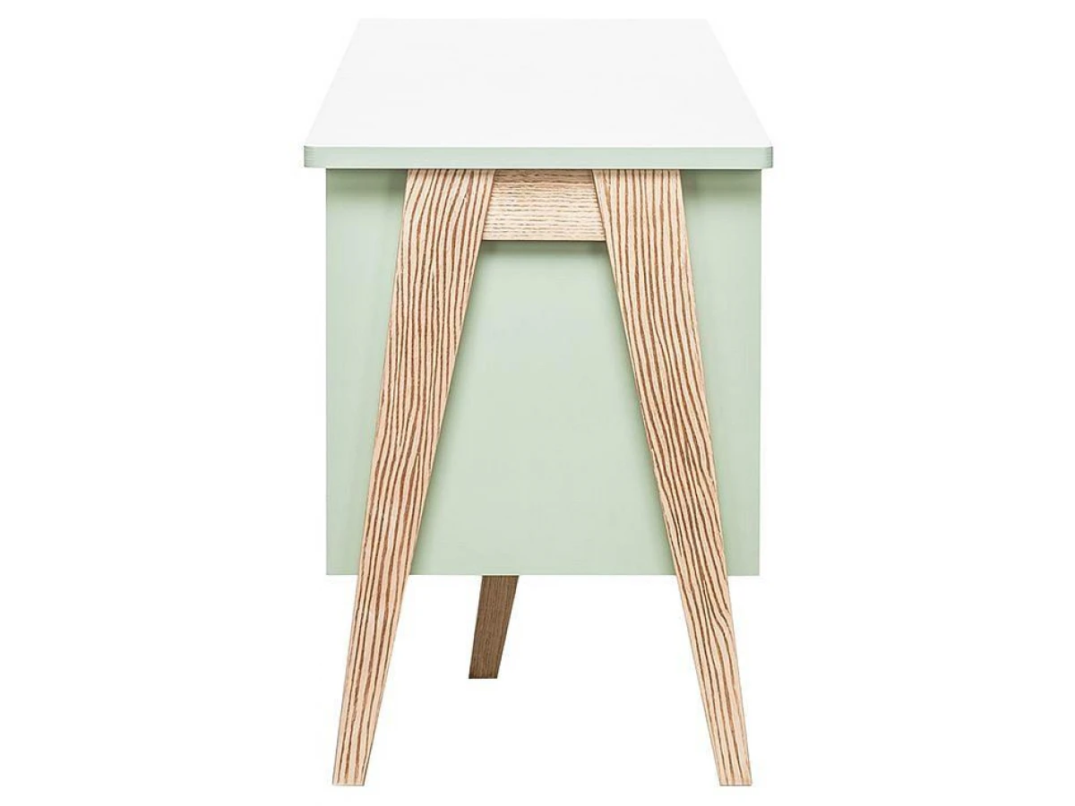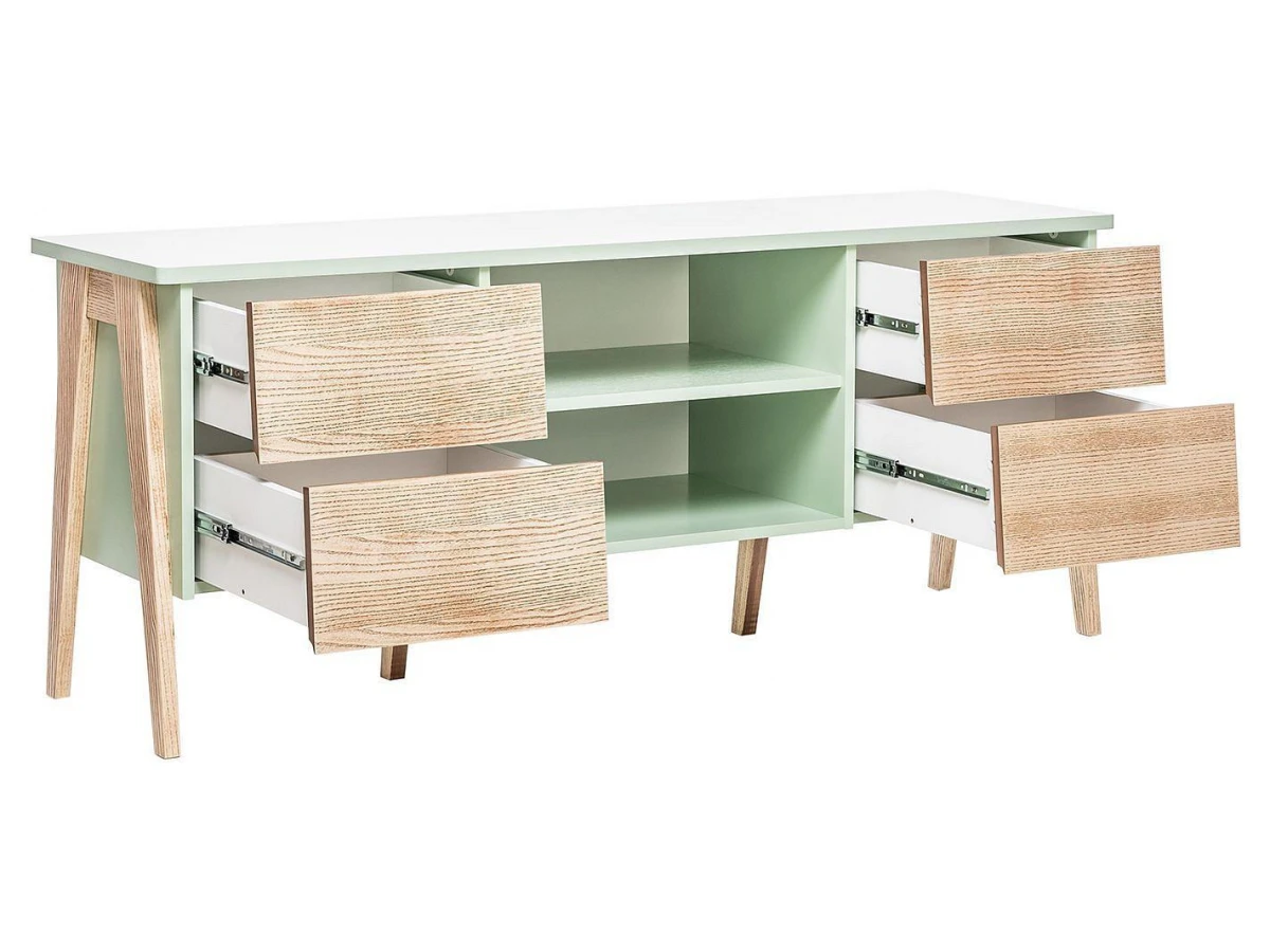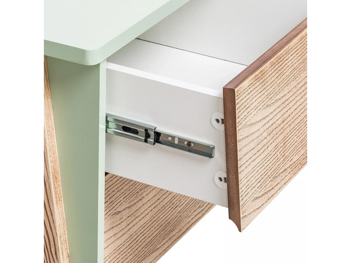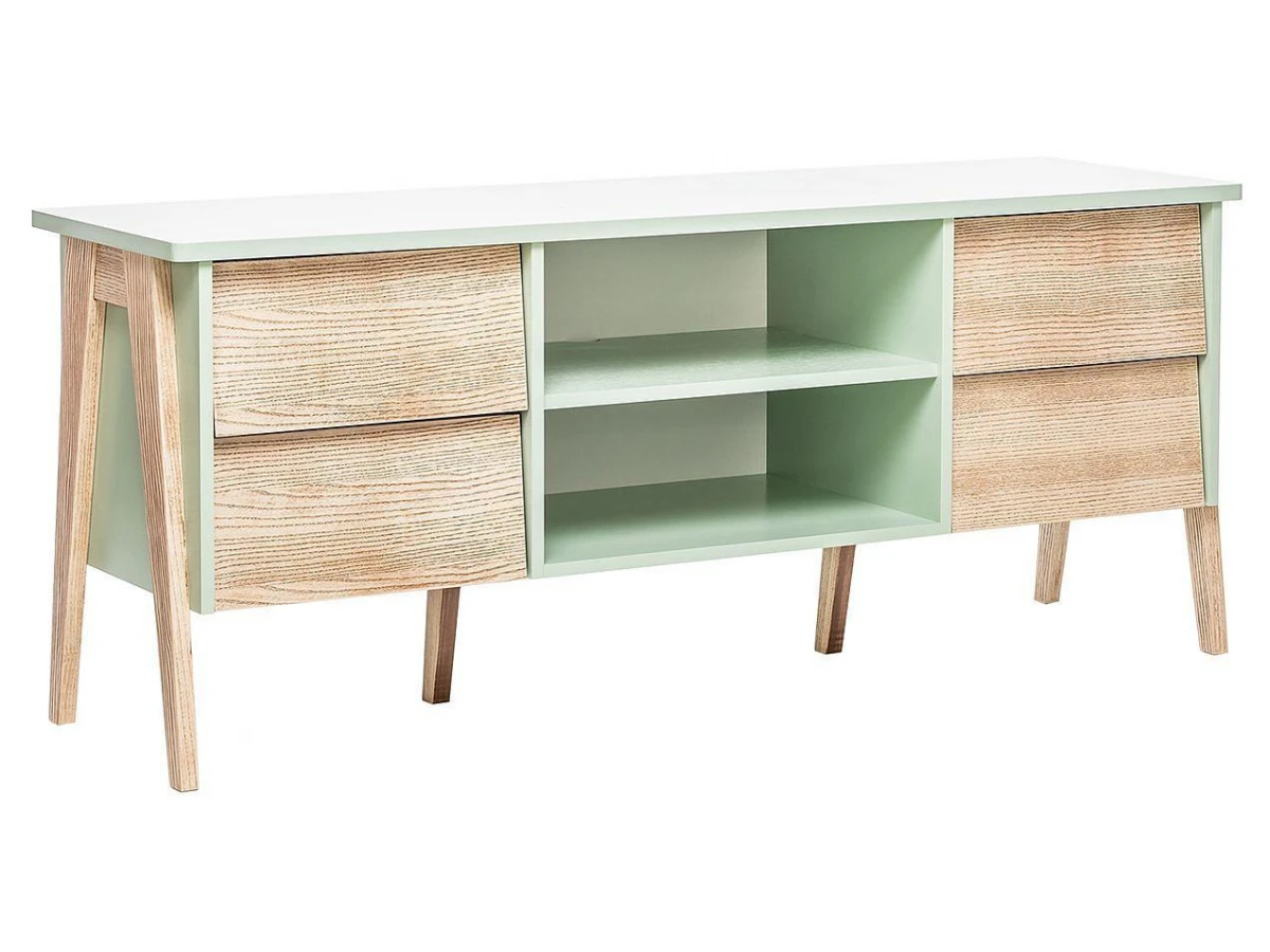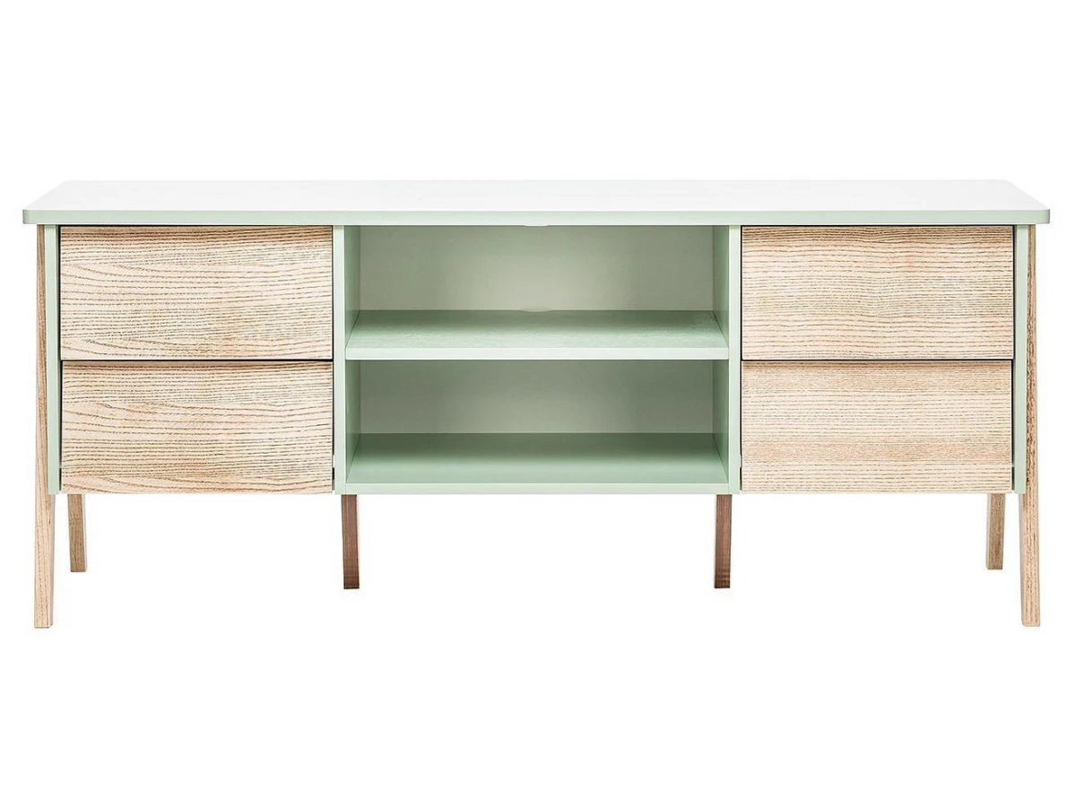 Акценты в новой моделе тумбы под ТВ расставлены правильно – экологичные материалы, мягкий дизайн и прочный каркас. В основе продукта заложен принцип функциональности для комфортного ежедневного использования. Конструкцией предусмотрена открытая секция для техники с задней стенкой и вместительные ящики с плавным закрыванием.