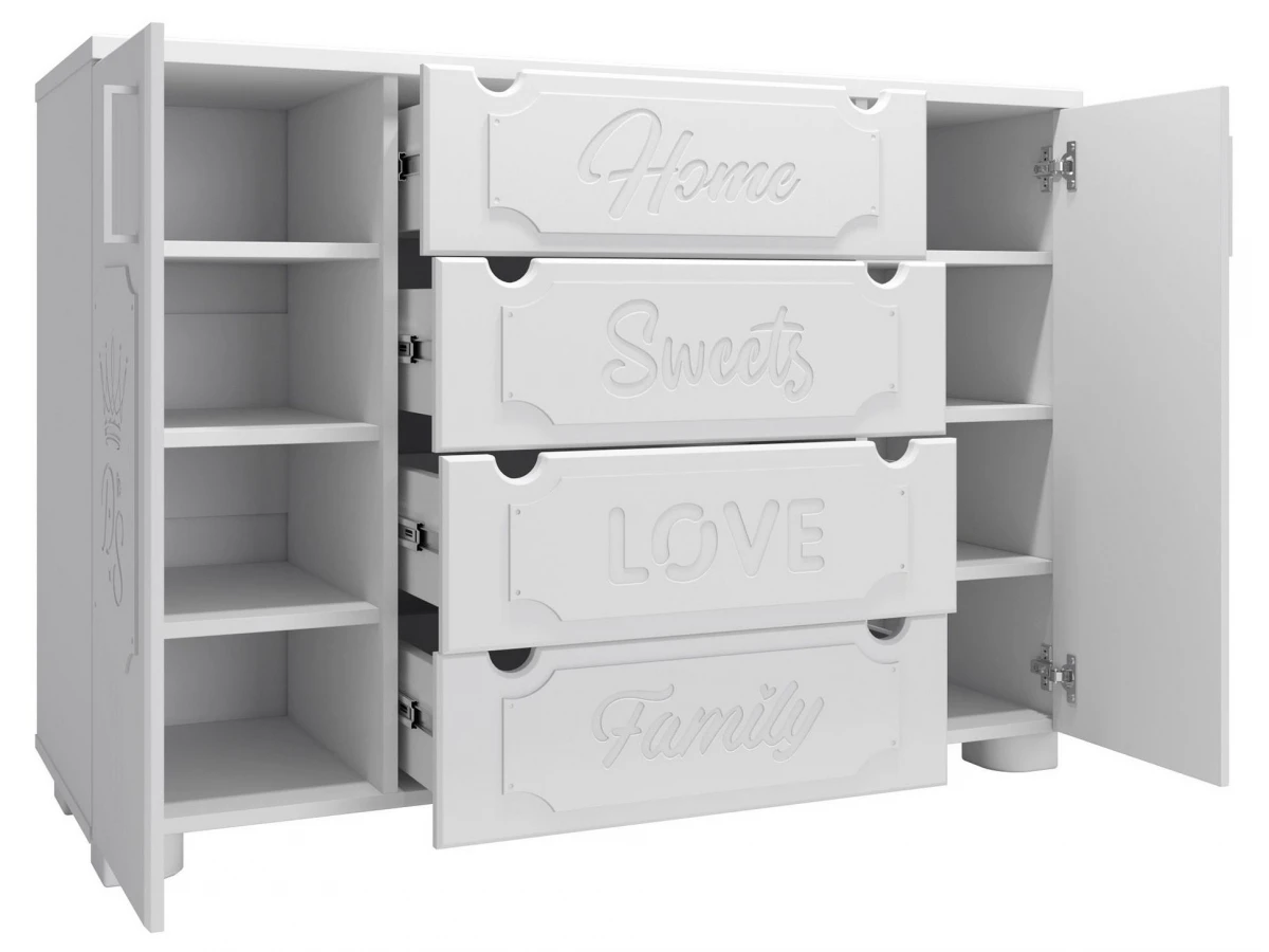 Система мебели Дримстар включает в себя отдельные самостоятельные модули, сочетающие в себе функциональность и уникальность дизайна. С базовым набором модулей легко оформить интерьер любого помещения. Все модули можно комбинировать между собой. Фасады украшены надписями, которые придают моделям оригинальный вид. Коллекция Дримстар поможет вам в оформлении стильного и современного интерьера.