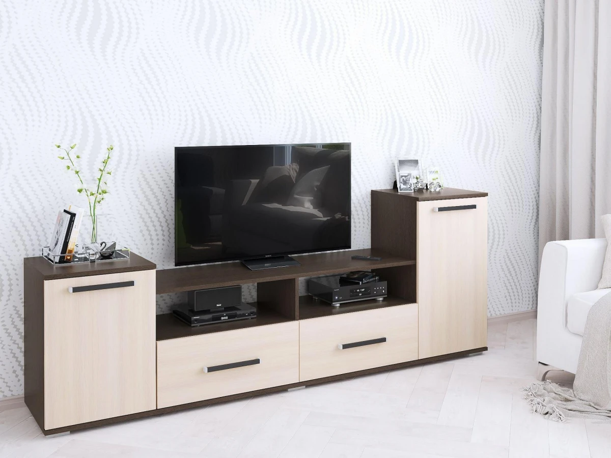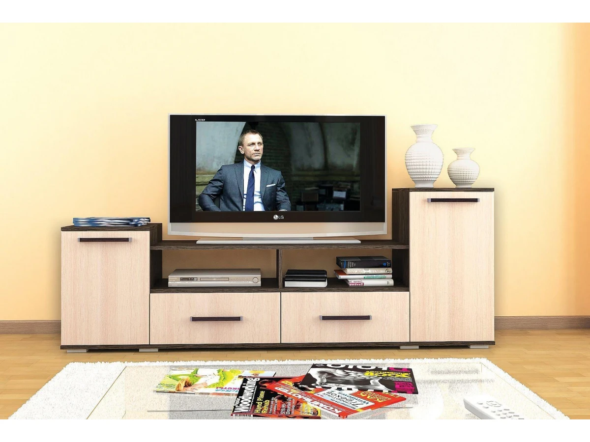 Когда все вещи лежат на своих местах – это залог красивого и аккуратного интерьера. Тем приятнее, когда зоной для хранения является функциональная и надежная тумба под ТВ Парус-2 TKS_00-00004008. Данная модель изготовлена брендом Тэкс и относится к коллекции Парус-2. Матовый корпус тумбы выполнен из популярного материала (ЛДСП Е1) и окрашен в благородный оттенок «венге». Тумба под ТВ Парус-2 стоит 6786 руб.