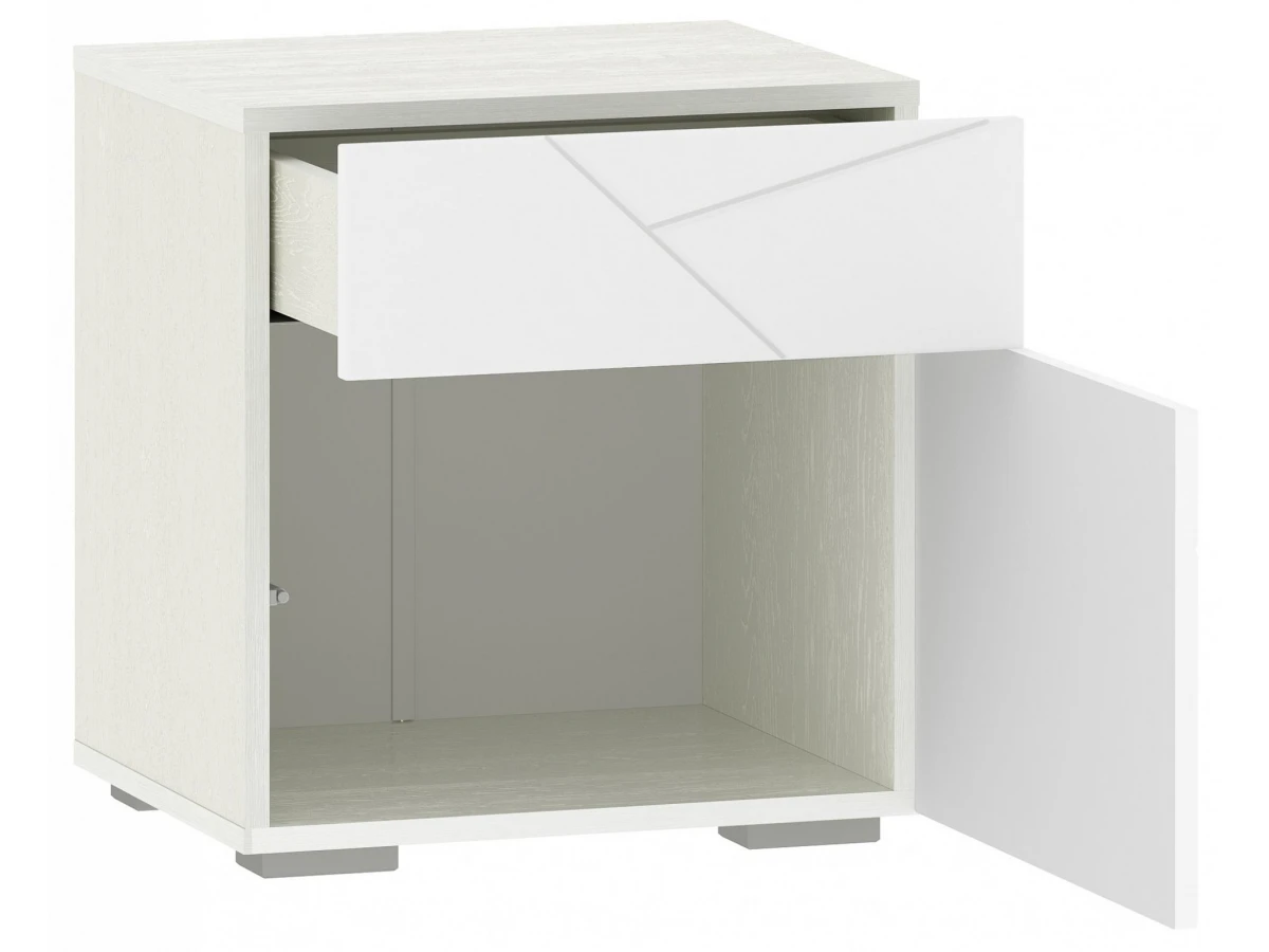 Тумбочка прикроватная с распашной дверцей и выдвижным ящиком. Ручка push to open. Направляющие шариковые, полного выдвижения.