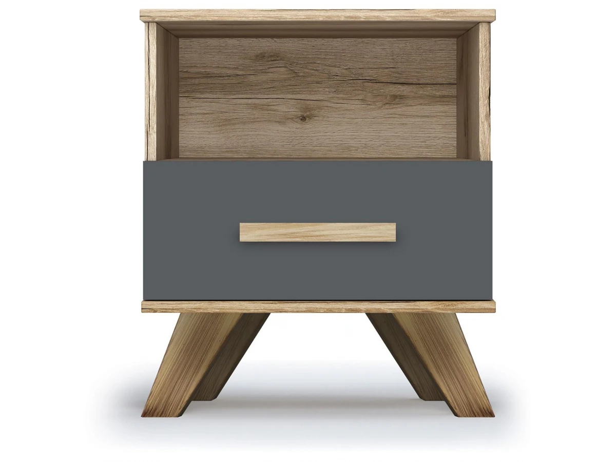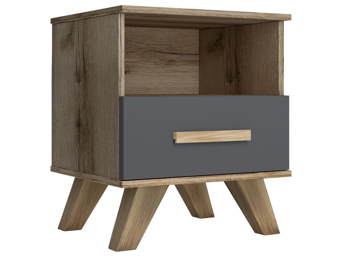 - конструкция соответствует современным тенденциям в дизайне мебели- в тумбочке имеется классический выдвижной ящик, а также ниша для открытого хранения личных предметов;