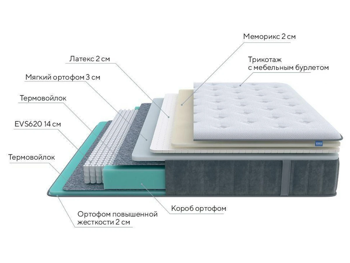 Вязкоэластичный материал придает матрасу так называемый эффект памяти формы. Под воздействием тепла и веса спящего, мемори медленно подстраивается под анатомические особенности человека, повышая анатомичность матраса Glory Soft и комфорт вашего сна.