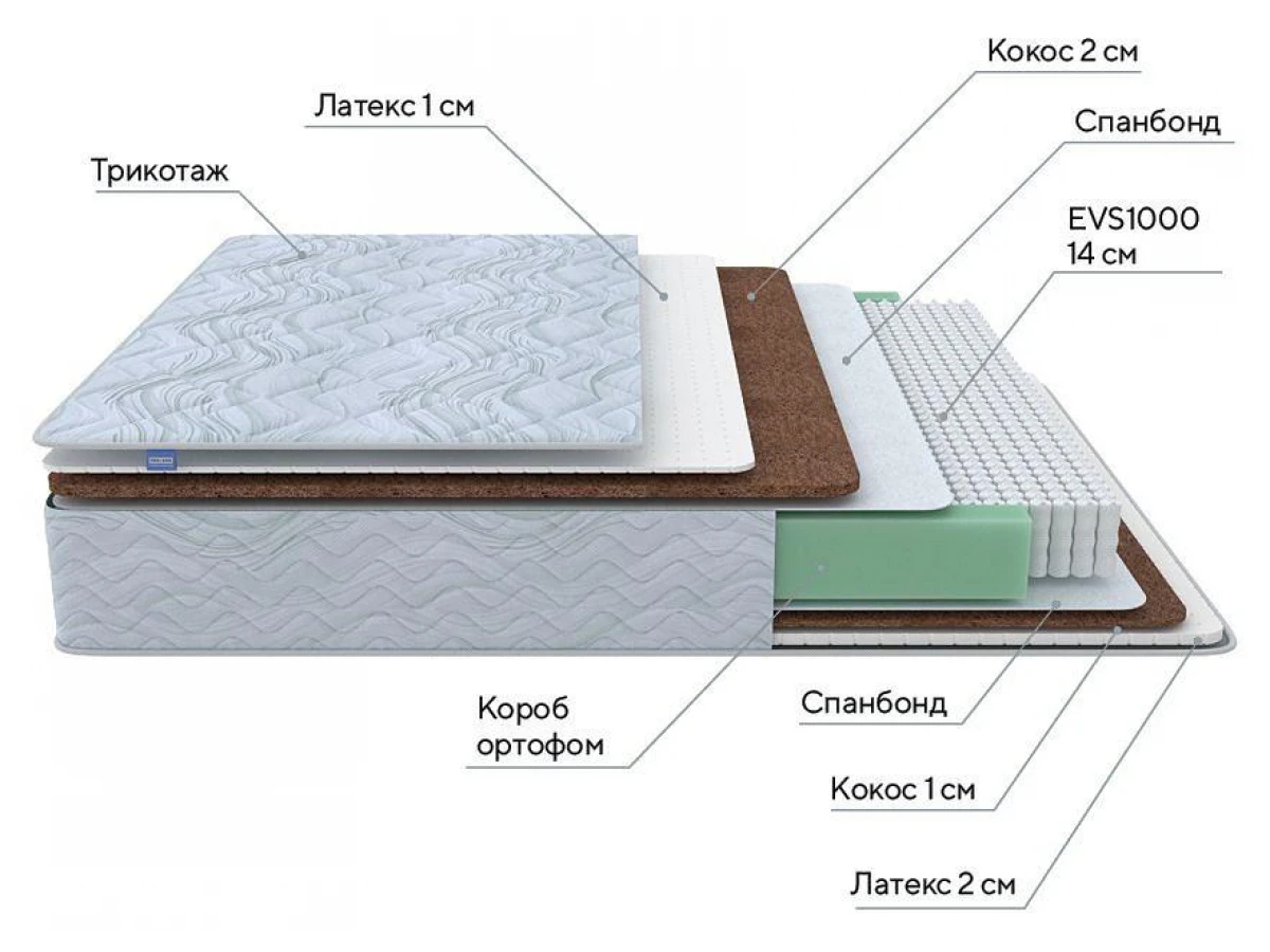 Блок независимых пружин — современная несущая система матрасов, обеспечивающая анатомическую поддержку в течение всего сна. Независимые пружины в индивидуальный мешочках чутко реагируют на нагрузку в конкретной точке матраса Green Latex M, гарантируя точную поддержку позвоночника.