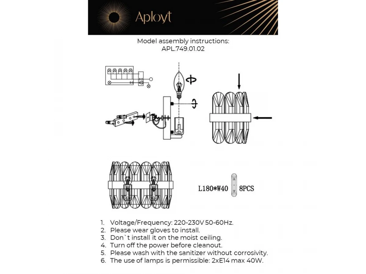 Утонченная модель APL.749.01.02 от польской компании Aployt относится к коллекции Jola и отлично подойдет для установки на стену спальни, оформленной в стиле модерн. Настенный светильник Aployt Jola APL.749.01.02 с цилиндрическими плафонами осветит помещение площадью 4.4 кв. м. Производитель Aployt рекомендует использовать для устройства лампы накаливания с цоколем E14 и мощностью 40 W. Прибор произведен с использованием материалов: хрусталь и металл. Основным цветом товара является золотой и прозрачный. Настенный светильник APL.749.01.02 продается по цене 9430 руб. Торопитесь сделать заказ в интернет-магазине ВоронежСвет.