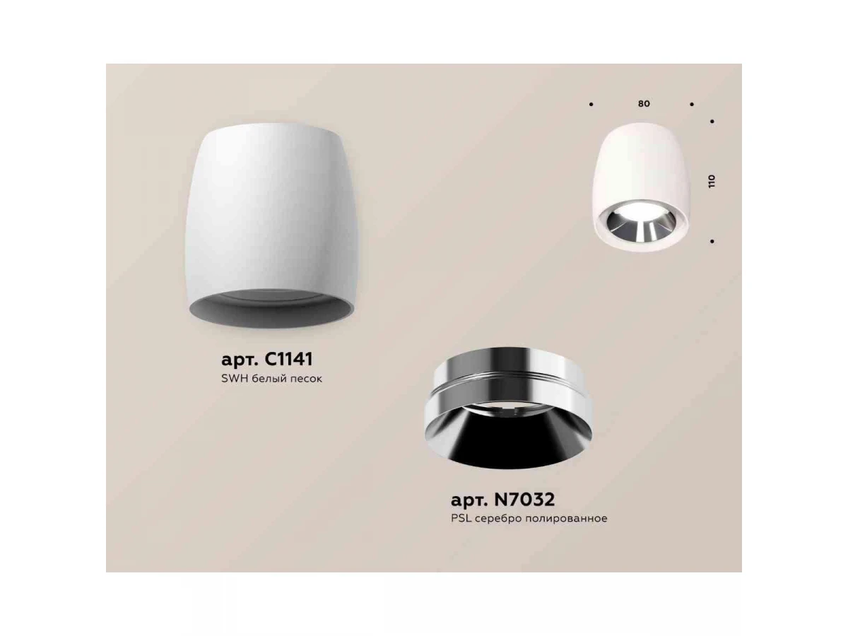 Комплект накладного светильника Ambrella light Techno Spot XS1141003 SWH/PSL белый песок/серебро полированное (C1141, N7032)