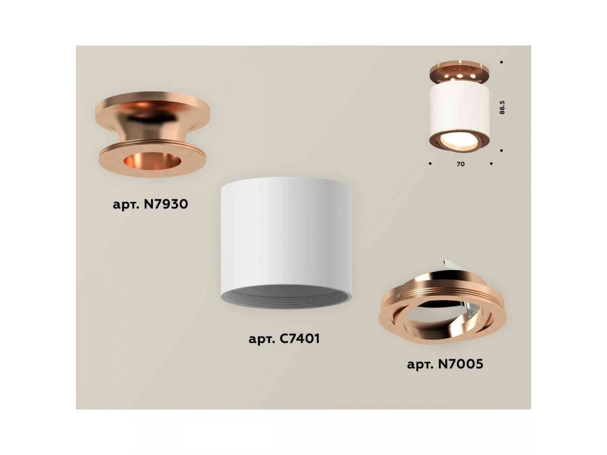 Комплект накладного светильника Ambrella light Techno Spot XS7401140 SWH/PPG белый песок/золото розовое полированное (N7930, C7401, N7005)